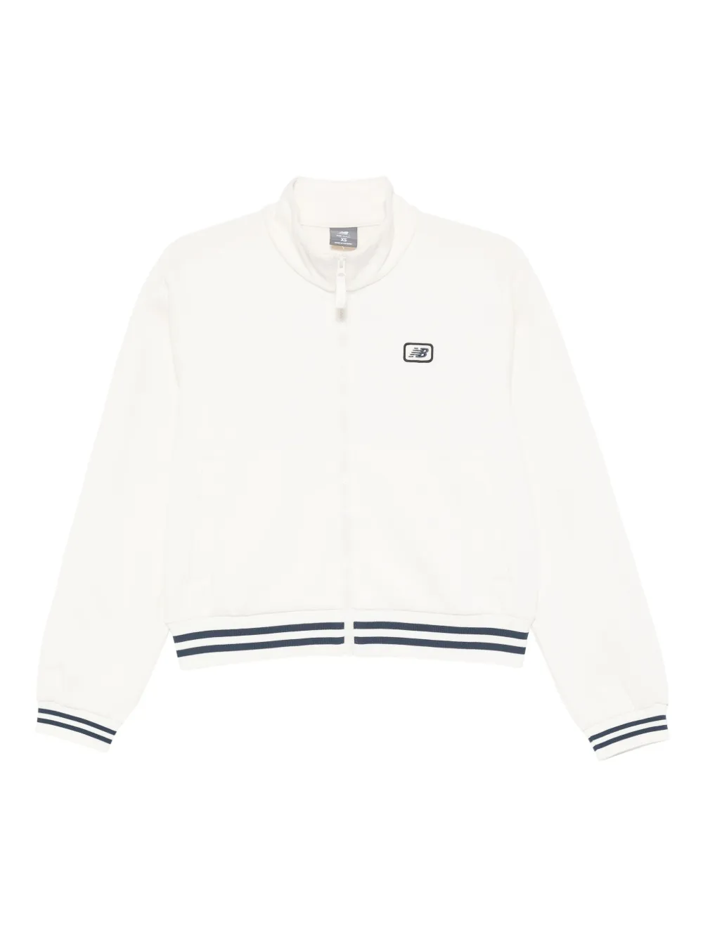 blanc fermeture zippée devant détails rayés manches longues ourlet et bords côtelés