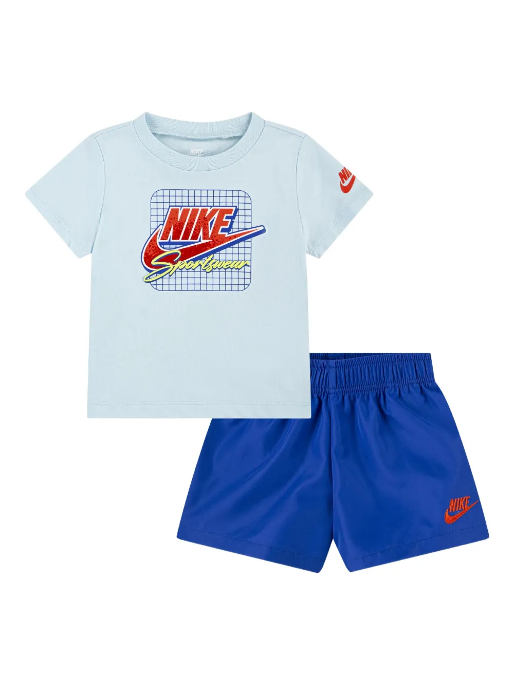 bleu clair logo carré logo nike sportswear manches courtes ceinture élastique short bleu