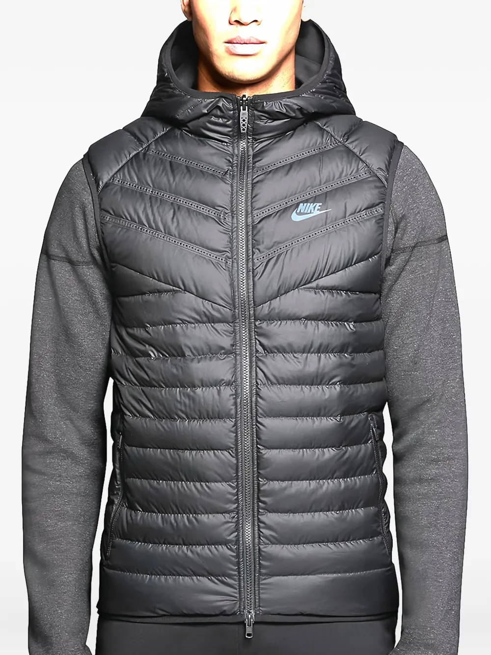noir fini matelassé design à capuche fermeture zippée empiècements en polaire manches longues détail de logo poches latérales