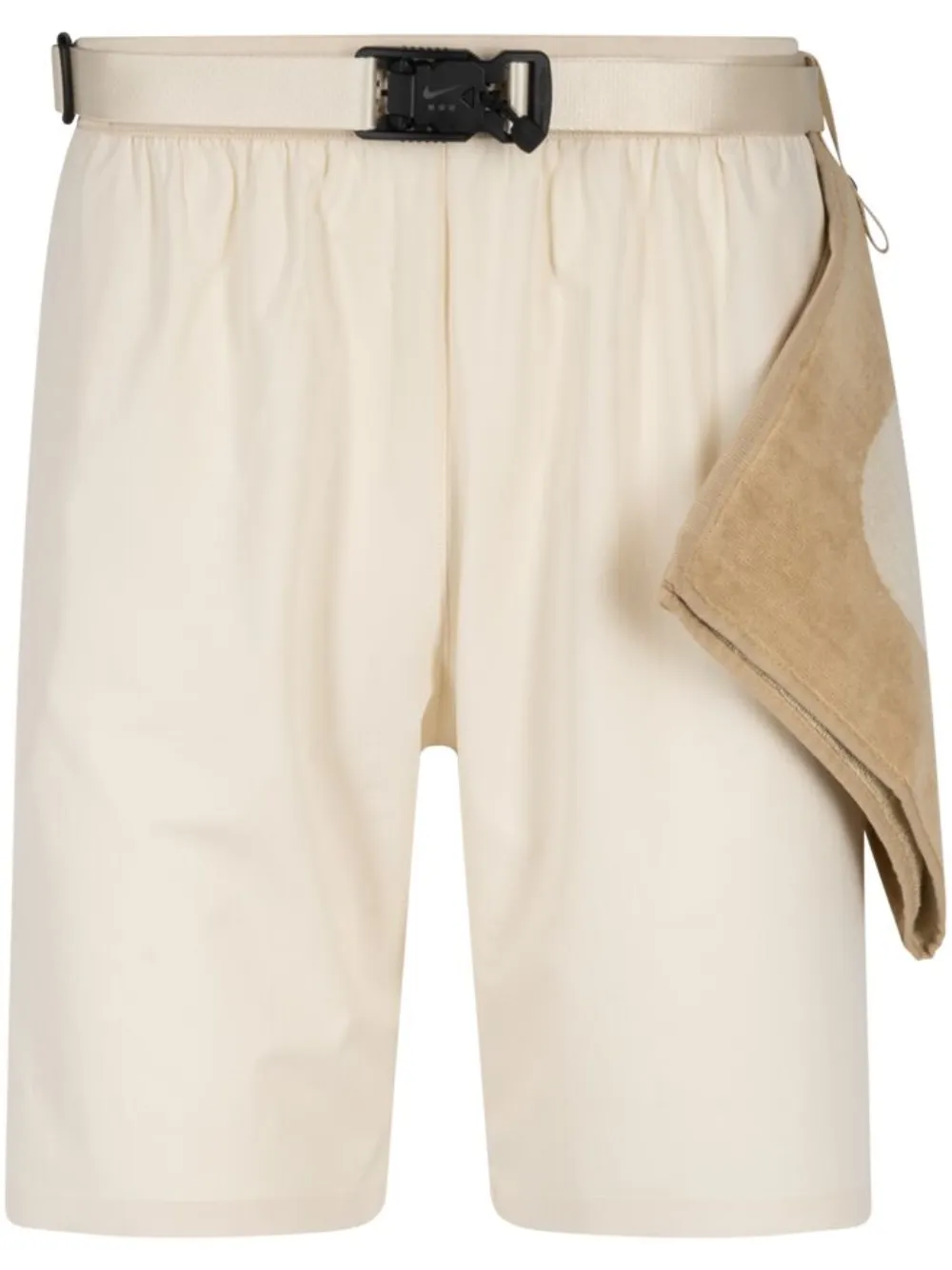 beige clair construction stretch taille élastique Flyvent à lien de resserrage ceinture détachable éponge détachable deux poches passepoilées latérales détail réfléchissant logo Swoosh signature short intérieur en maille ourlet droit ^