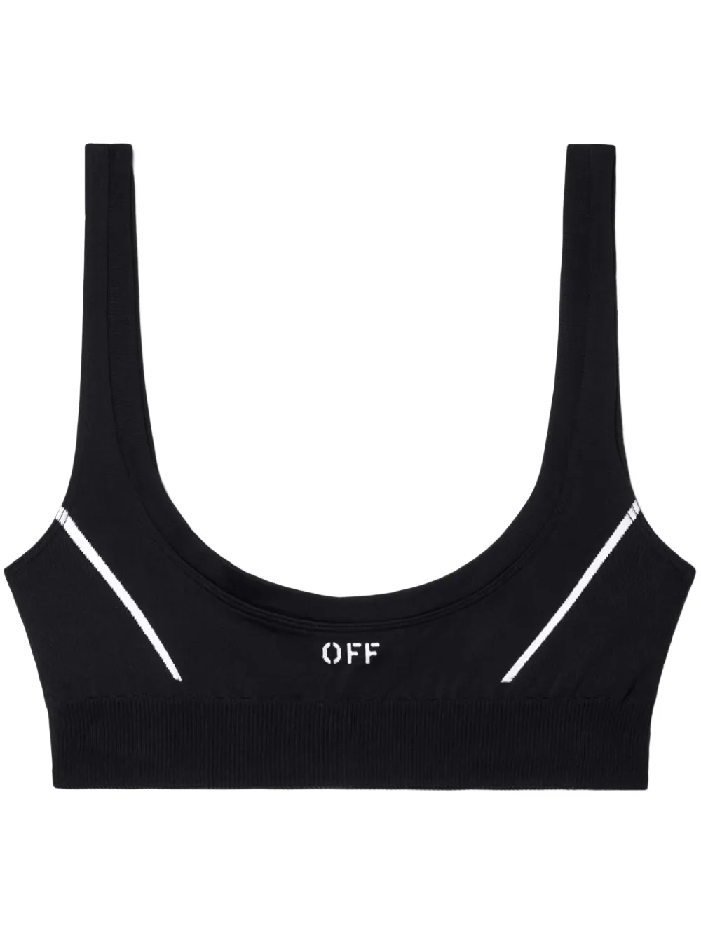 noir coutures invisibles logo intarsia encolure arrondie décolleté arrondi dans le dos design sans manches