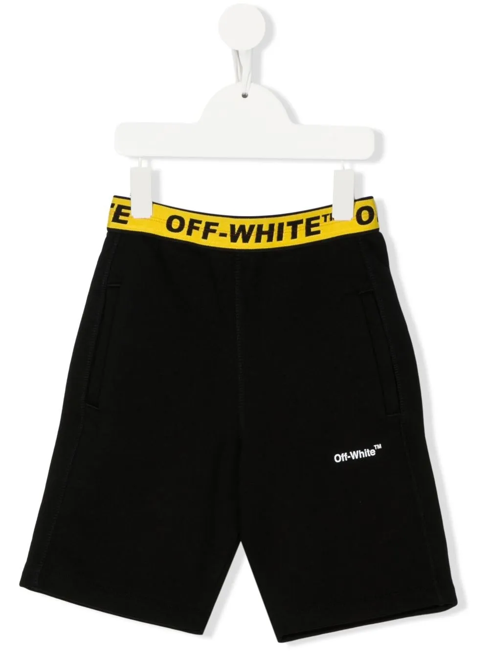 Noir, jaune, coton, logo brodé, coupe droite, ceinture élastique.