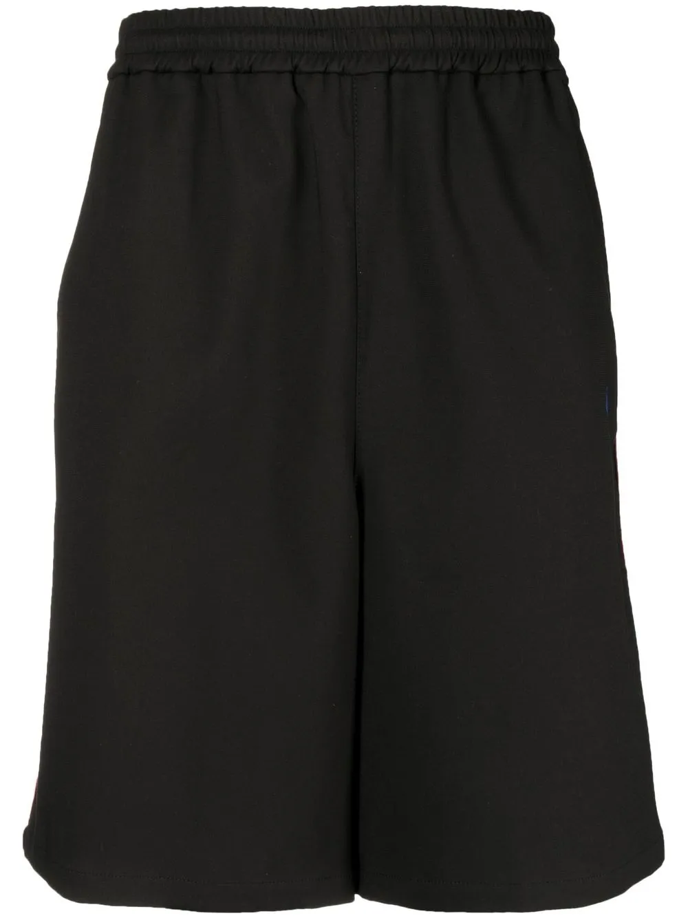 noir coton mélangé logo Hands Off signature détail de rayure latérale ceinture élastique poches latérales fendues poche arrière zippée ourlet droit
