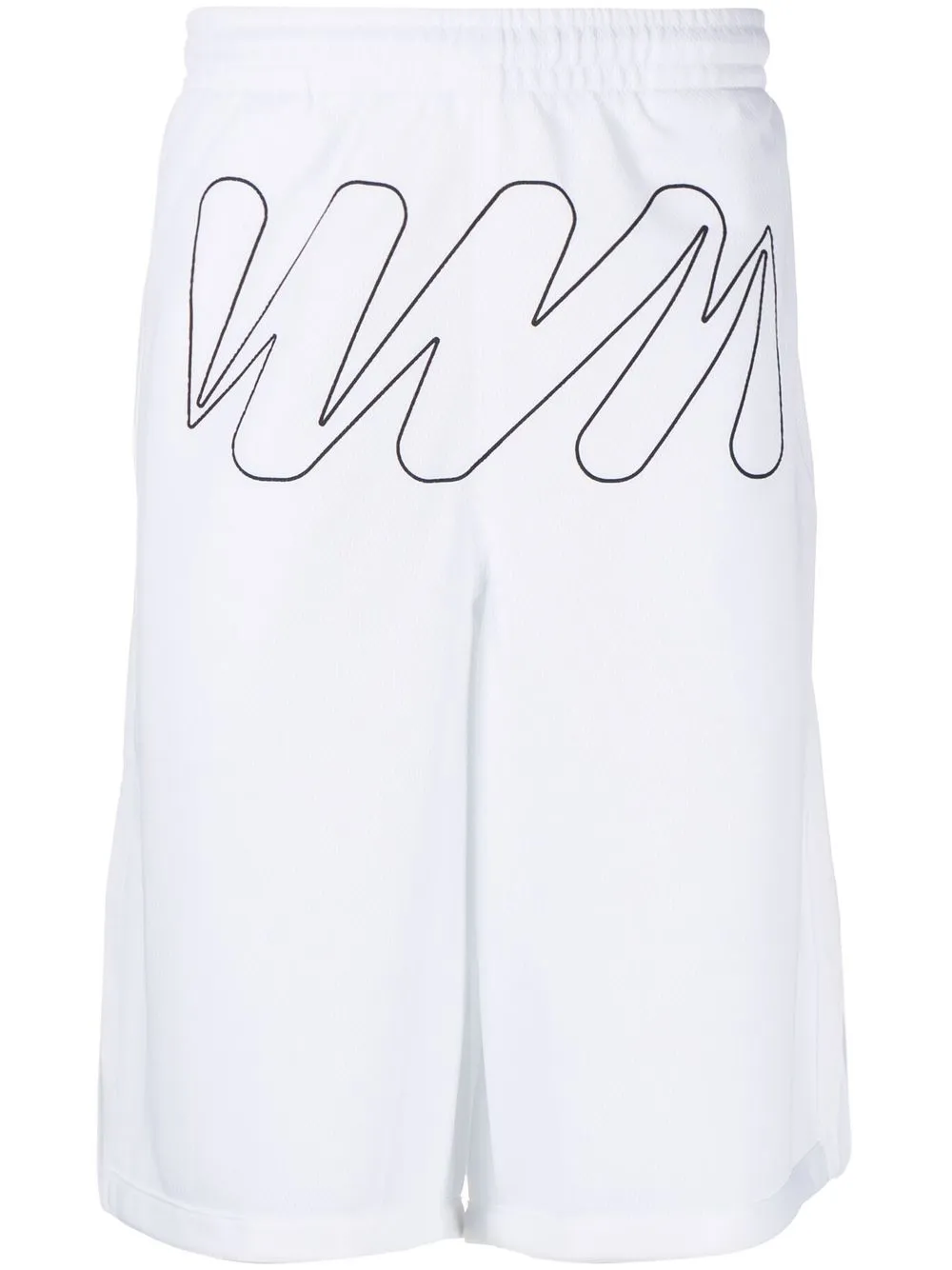 Blanc, ceinture élastique, poches plaquées latérales, hauteur genou.