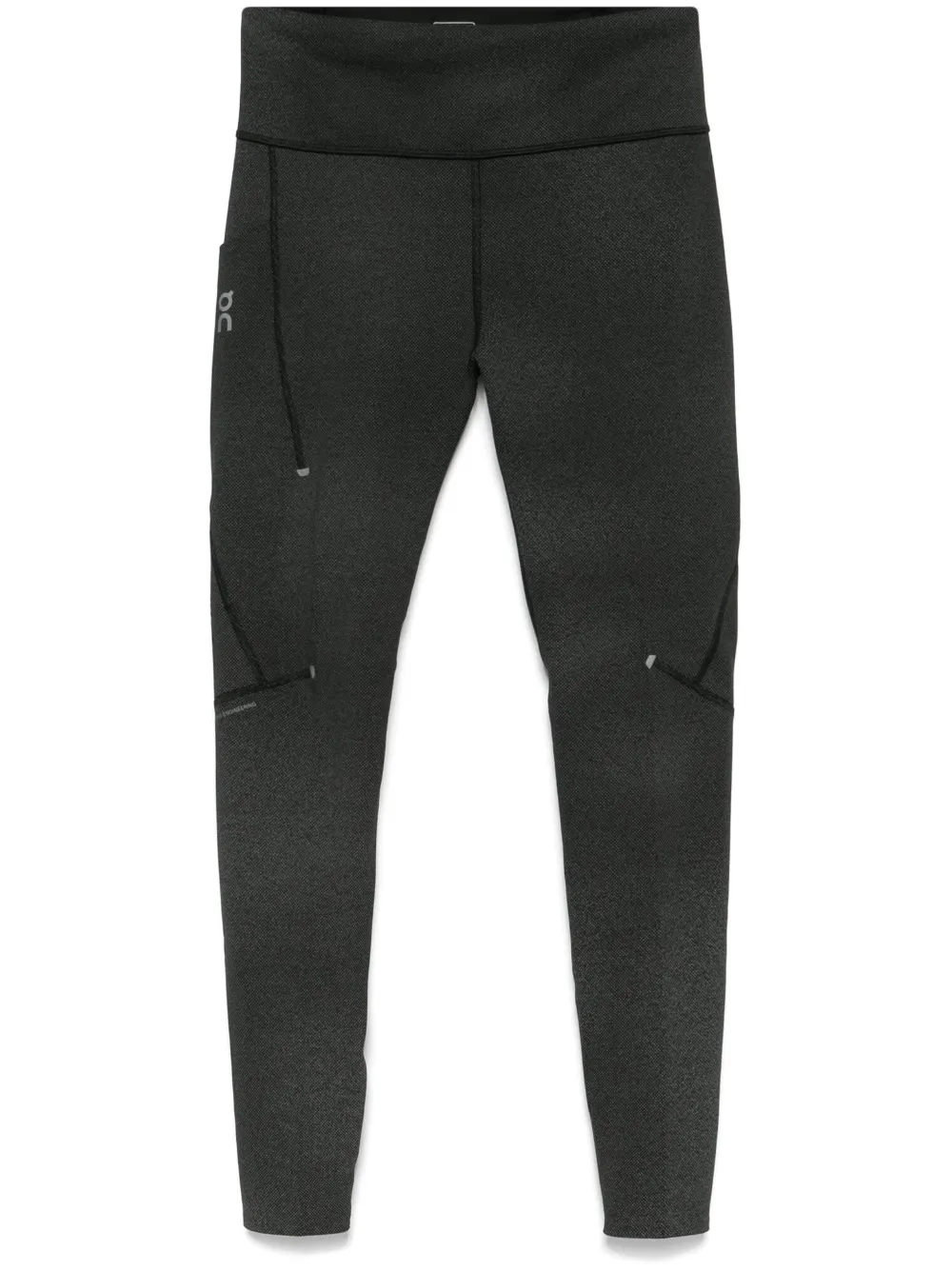 noir polyester recyclé mélangé design stretch technologie de compression taille à fronces détails de coutures logo réfléchissant sur le côté poche arrière zippée coupe super skinny coupe fuselé ^