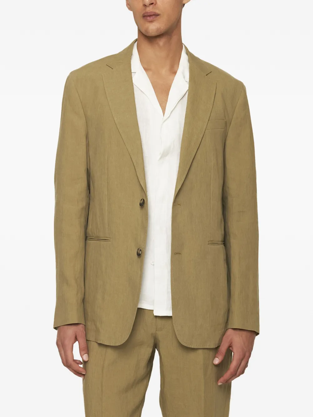 groen knoopsluiting aan de voorkant klassieke revers twee steekzakken aan de zijkant knoopmanchetten
