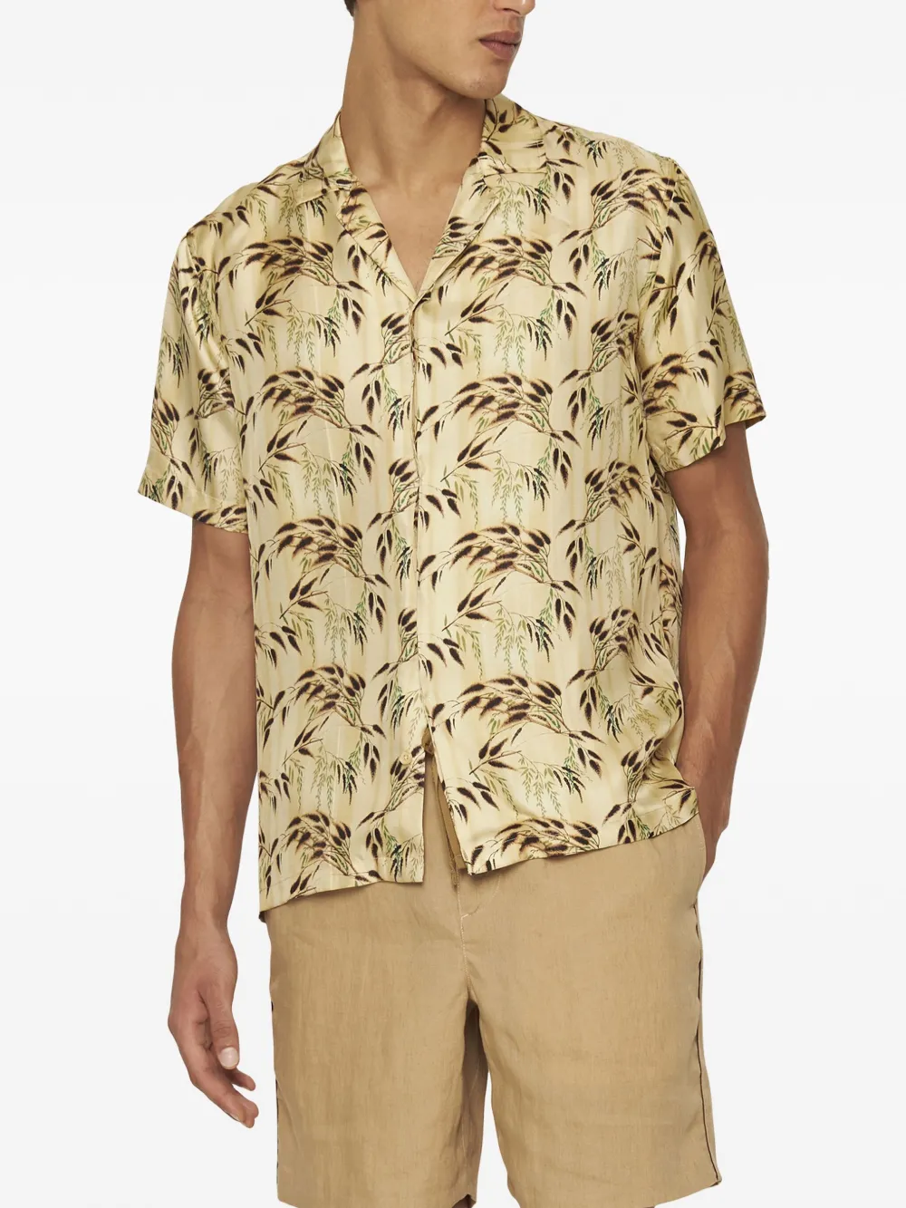 beige knoopsluiting aan de voorkant bladerprint korte mouwen rechte zoom
