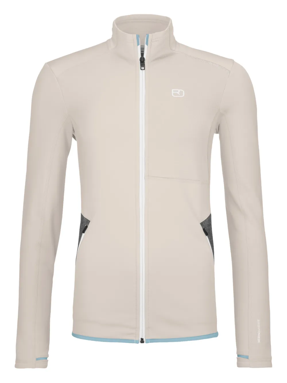 beige clair fermeture zippée devant poches latérales zippées logo imprimé à la poitrine manches longues