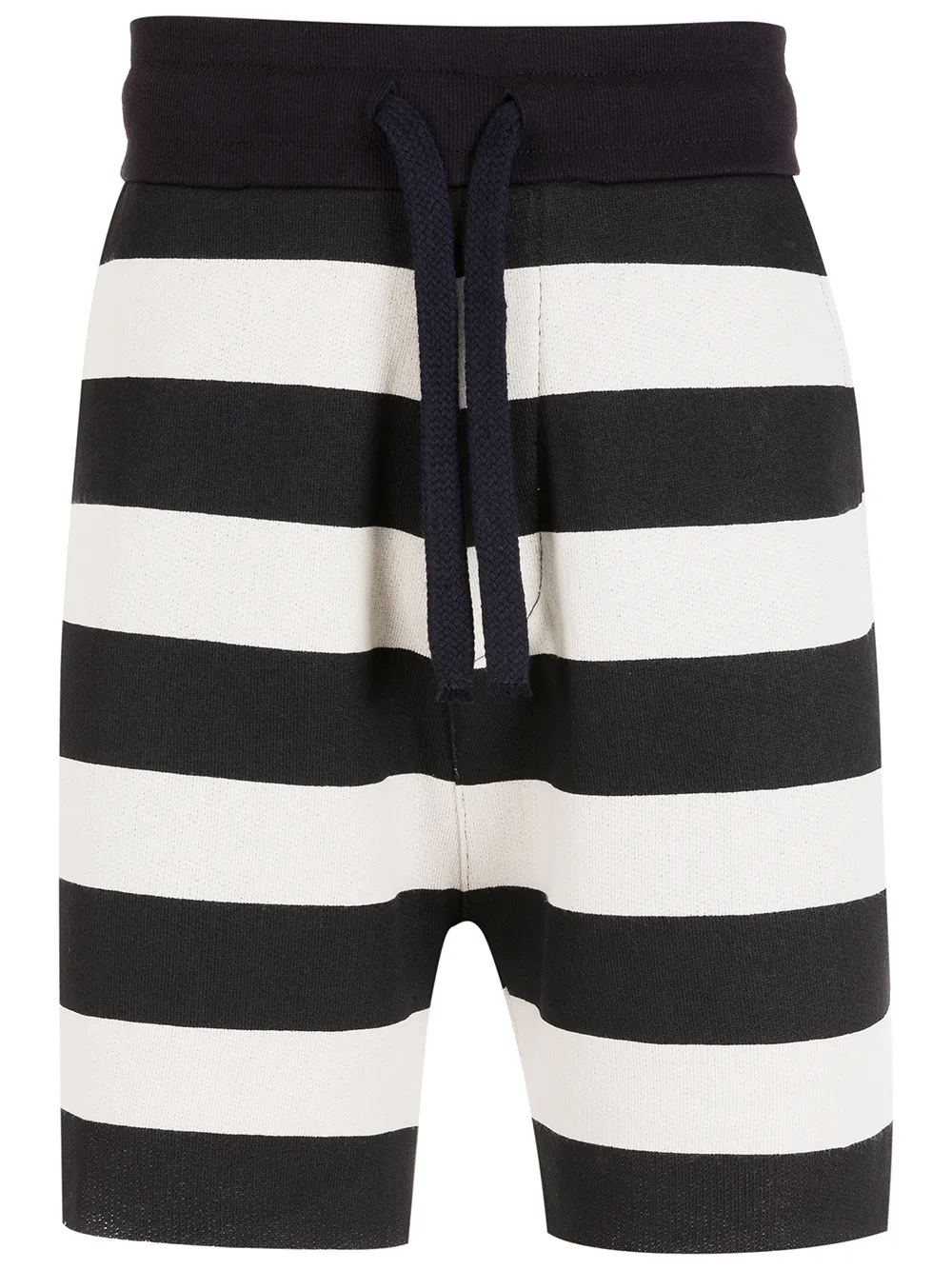 Rayures horizontales imprimées, ceinture élastique, lien de resserrage, deux poches latérales fendues, poche arrière plaquée, hauteur genou.