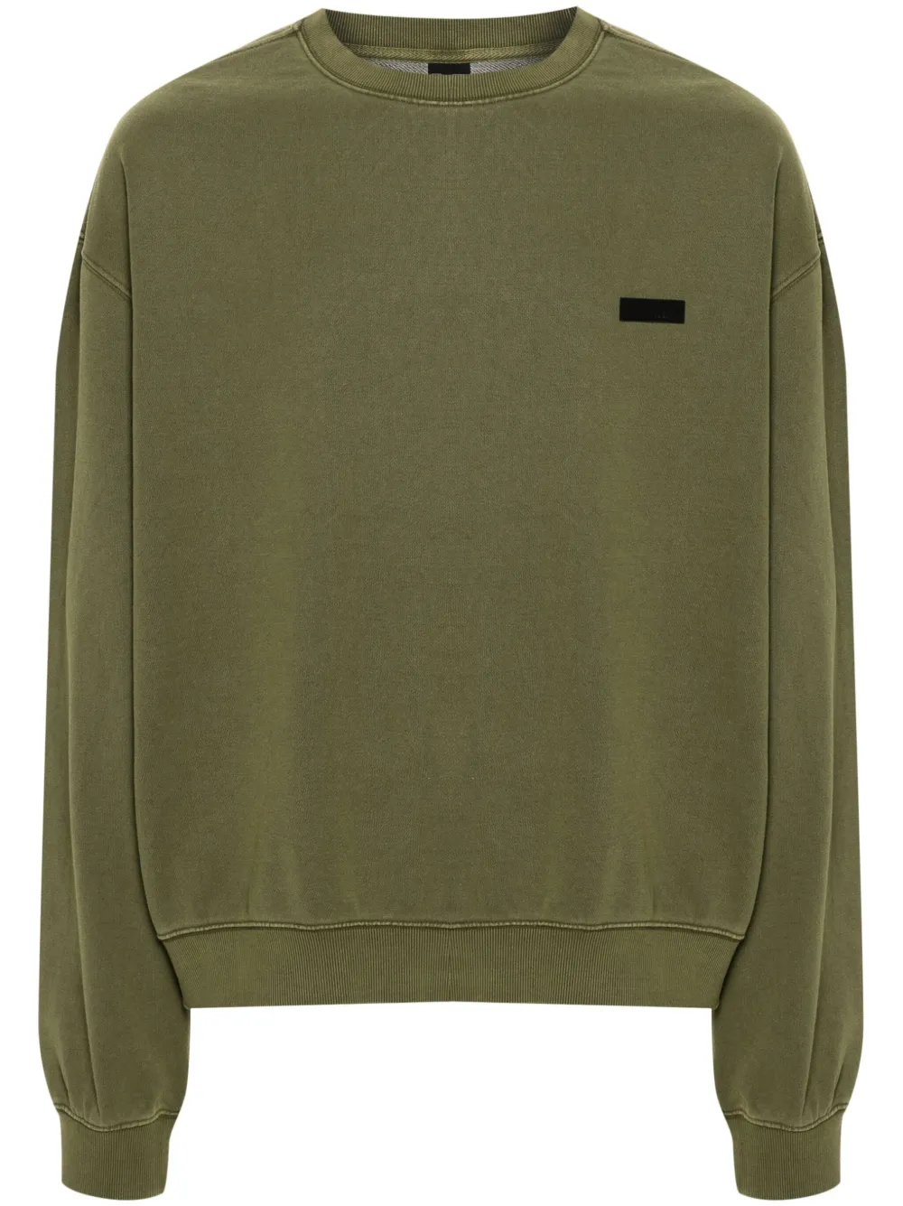 vert olive coton biologique et polyester recyclé mélangés texture jersey finitions nervurées patch poitrine à logo col rond épaules tombantes manches longues ourlet droit doublure French en éponge