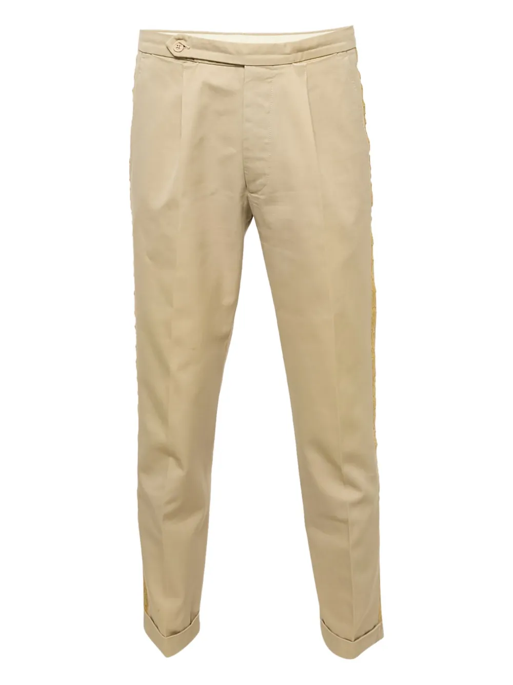 Gabardine||Fair|Palm Angels’ trousers are cut from beige gabardine and accented with contrast side tape, bringing a retro-sport aesthetic to tailored silhouettes. Relaxed through the leg and sharp at the waist, they pair well with graphic tees, knitwear, or oversized hoodies for a bold off-duty edit.