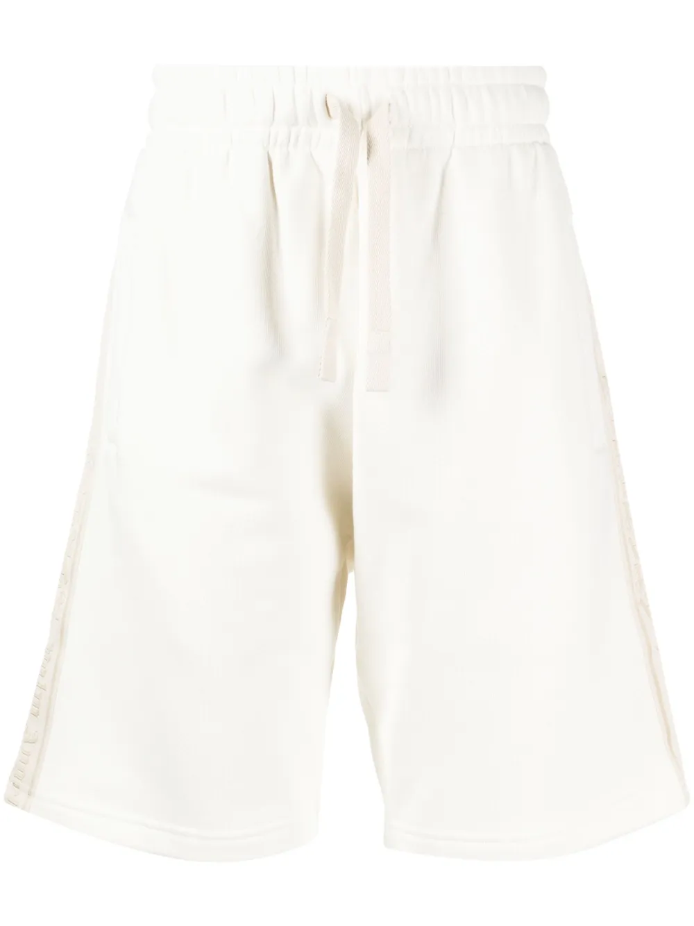 blanc cassé/beige clair coton texture jersey finition à bande logo taille élastique à lien de resserrage deux poches latérales passepoilées poche arrière passepoilée coupe droite longueur genou
