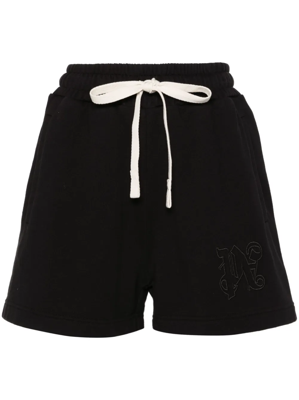 noir coton texture jersey logo brodé sur la poitrine taille élastique à lien de resserrage coupe droite deux poches latérales passepoilées poche arrière plaquée ourlet droit longueur au dessus du genou