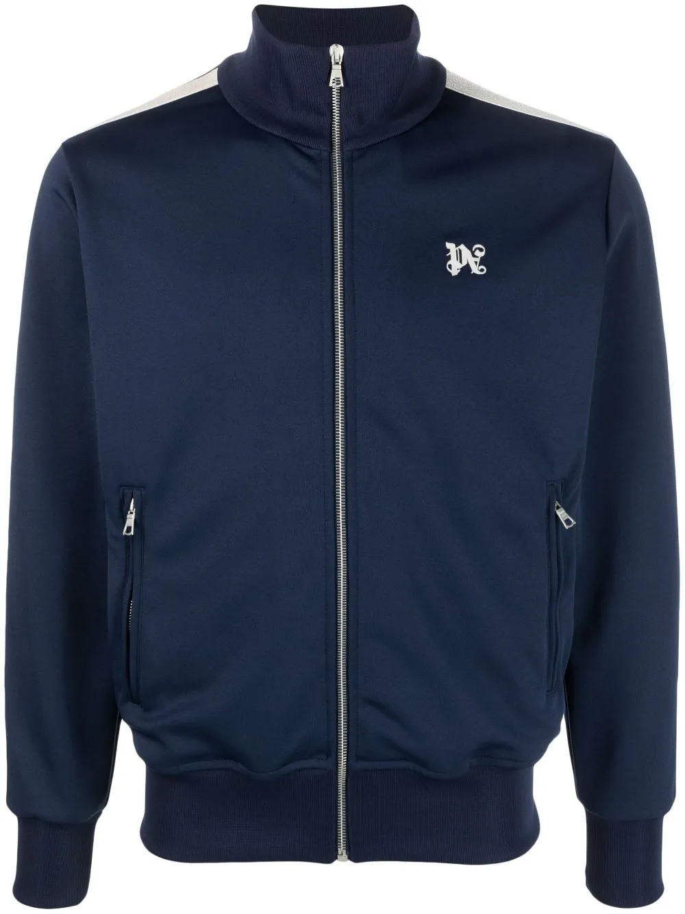 Logo brodé sur la poitrine, détail de rayure latérale, col montant, fermeture zippée devant, manches longues, poches à fermeture zippée devant, ourlet droit.