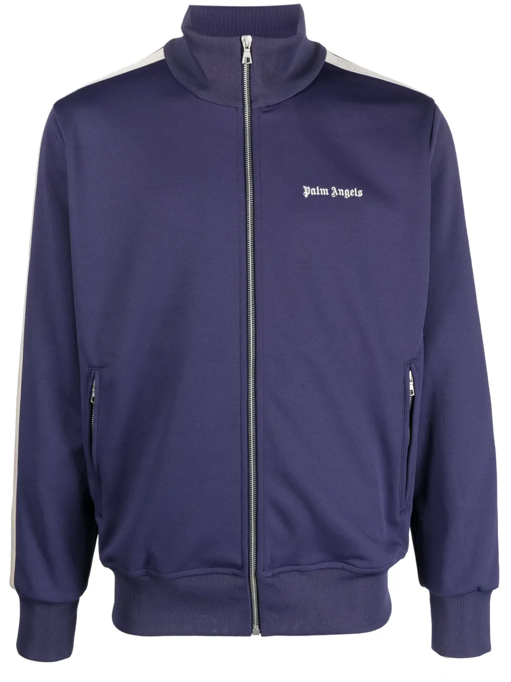 Bleu/blanc, logo imprimé à la poitrine, détail de rayure latérale, col montant, fermeture zippée devant, manches longues, fermeture zippée sur le côté, ourlet droit.