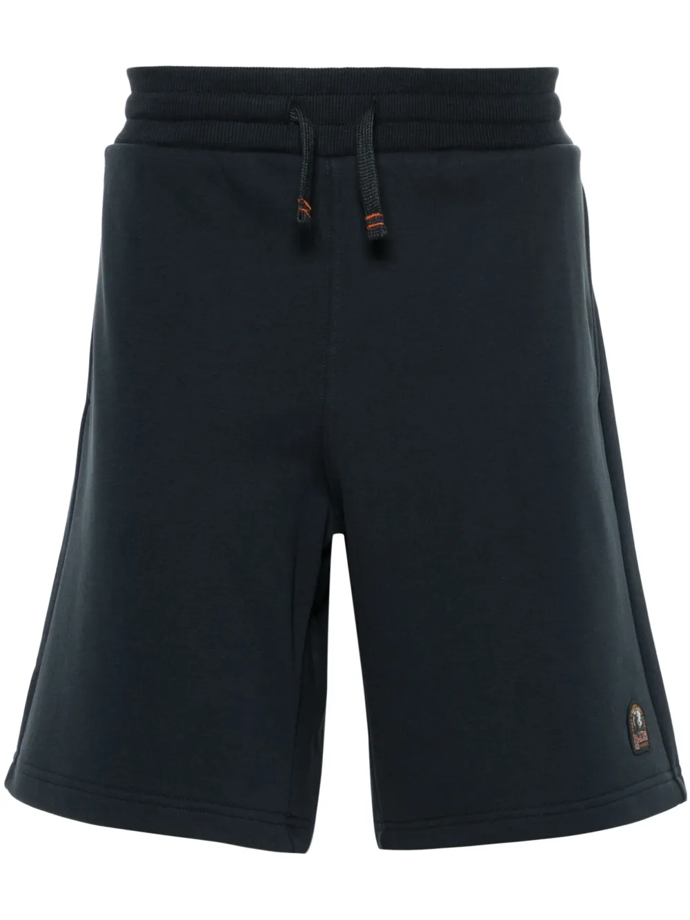 bleu marine coton mélangé texture jersey ceinture élastique deux poches passepoilées latérales appliqué logo sur le côté poche arrière plaquée coupe courte