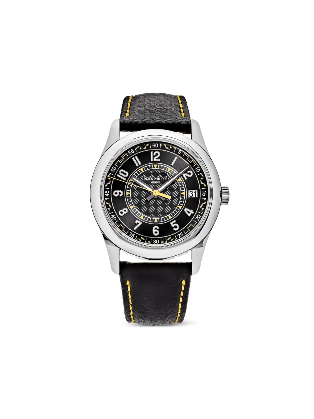 2023 40 mm noir boîtier rond chiffres arabes aiguilles luminescentes or blanc verre saphir bracelet en cuir mouvement automatique indicateur de date étanche jusqu’à 30 m/3 ATM boucle ardillon Boîte et documents originaux inclus. L’utilisation quotidienne normale et les agents externes peuvent réduire l’éclat des pierres précieuses et des surfaces en or. Pour entretenir vos bijoux, utilisez des produits spécifiques, non abrasifs et spécialement conçus pour le nettoyage. Cette montre a été évaluée et authentifiée par les horlogers WRIST AFICIONADO. Condition : NON PORTÉ, AVEC ÉTIQUETTES. Cette pièce pre-owned est non portée et dans son état d’origine. Livré avec ses étiquettes d’origine attachées.
