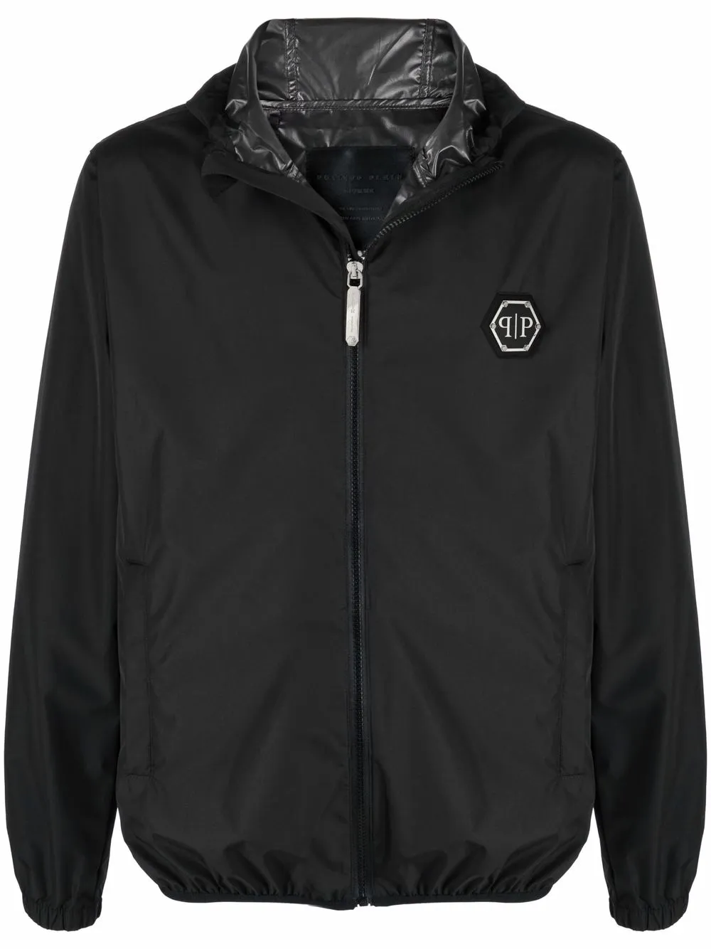 Patch poitrine à logo, capuche à lien de resserrage, fermeture zippée devant, poches plaquées latérales, manches longues, poignets élastiqués. Couleur : noir.