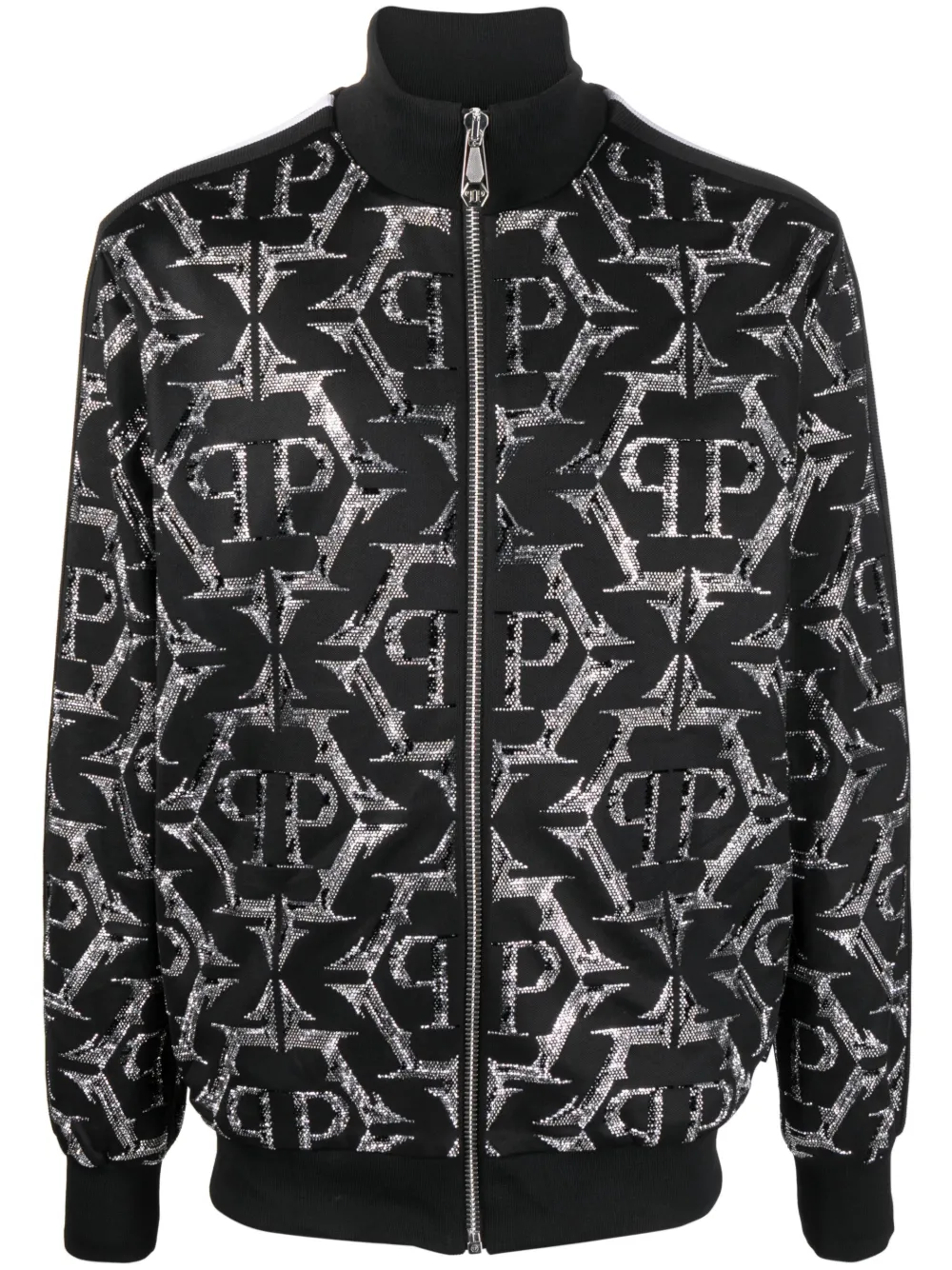 Philipp Plein veste de moto zippée à ornements strassés – Noir