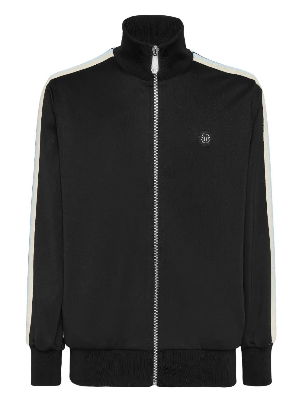 noir rayures latérales logo brodé à l’arrière poignets côtelés fermeture zippée