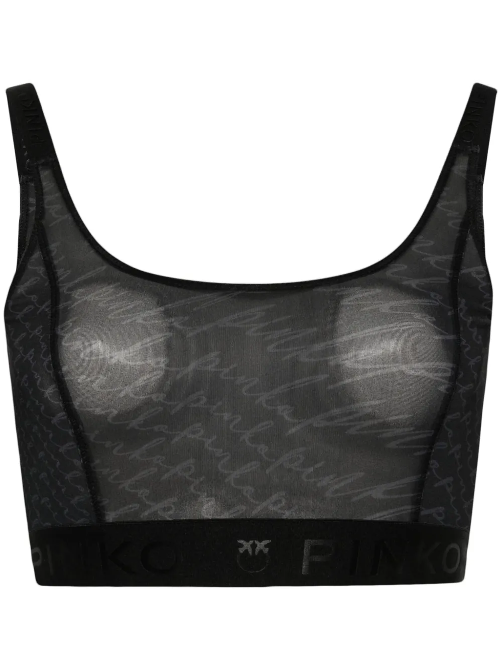 noir design stretch effet de transparence imprimé monogrammé encolure arrondie brides ajustables à logo en jacquard bande sous-poitrine élastiquée