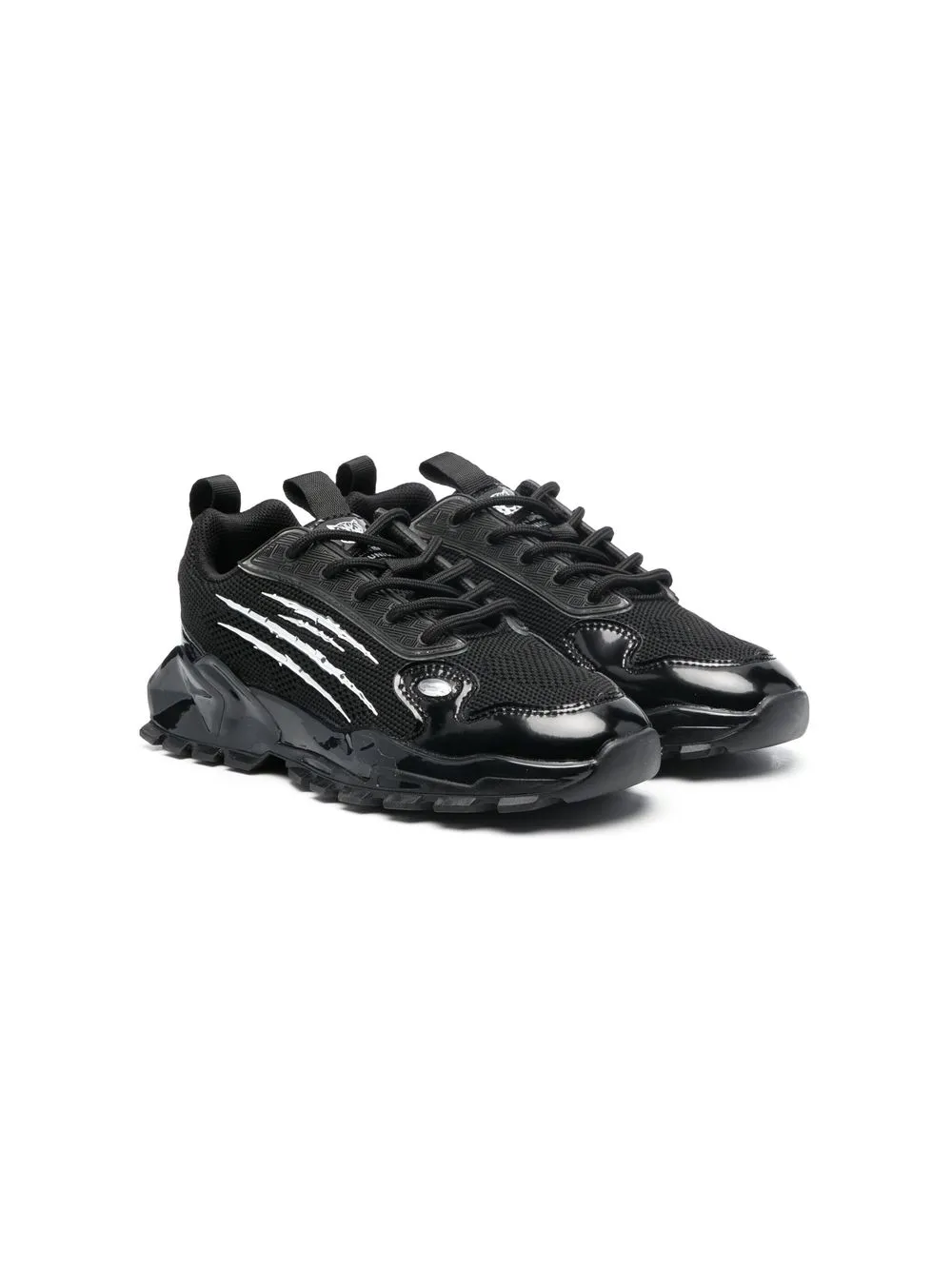 Fermeture à lacer sur le devant, bout rond, semelle épaisse en caoutchouc, design à empiècements.