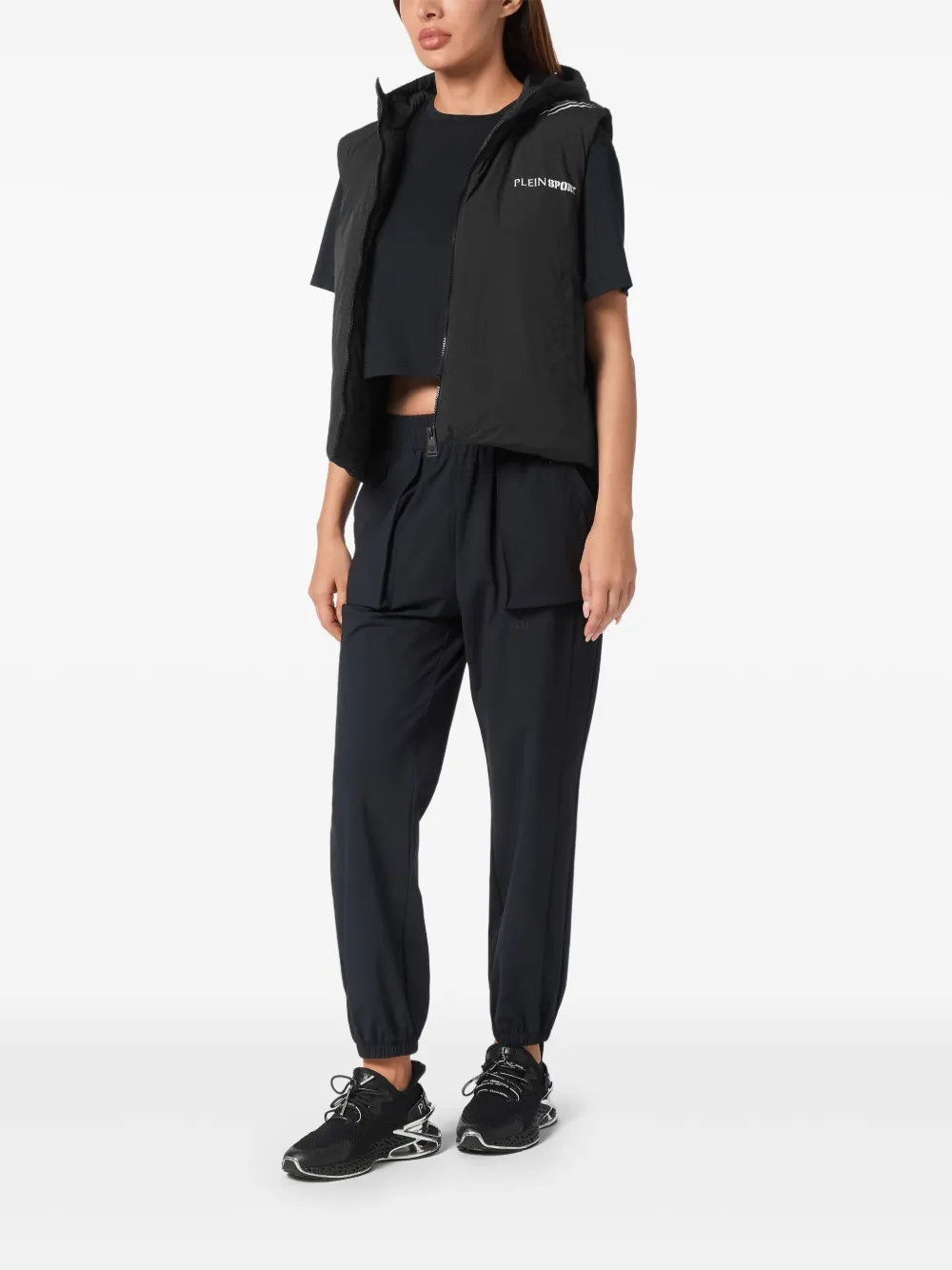 zwart ritssluiting aan de voorkant twee paspelzakken aan de zijkant klassieke capuchon logoprint op de borst
