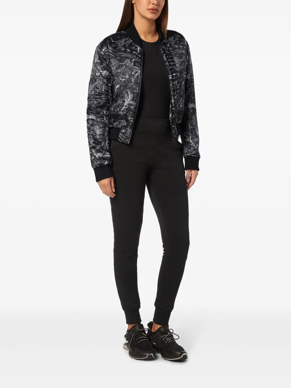 zwart all-over grafische print botanische print logoprint op de voorkant bandkraag lange mouwen geribbelde manchetten en zoom rechte zoom ritssluiting aan de voorkant
