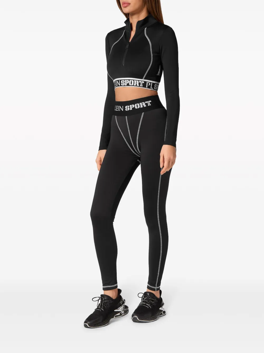 zwart/wit katoen zoomdetail opstaande kraag lange mouwen band met logo cropped halve rits aan de voorkant