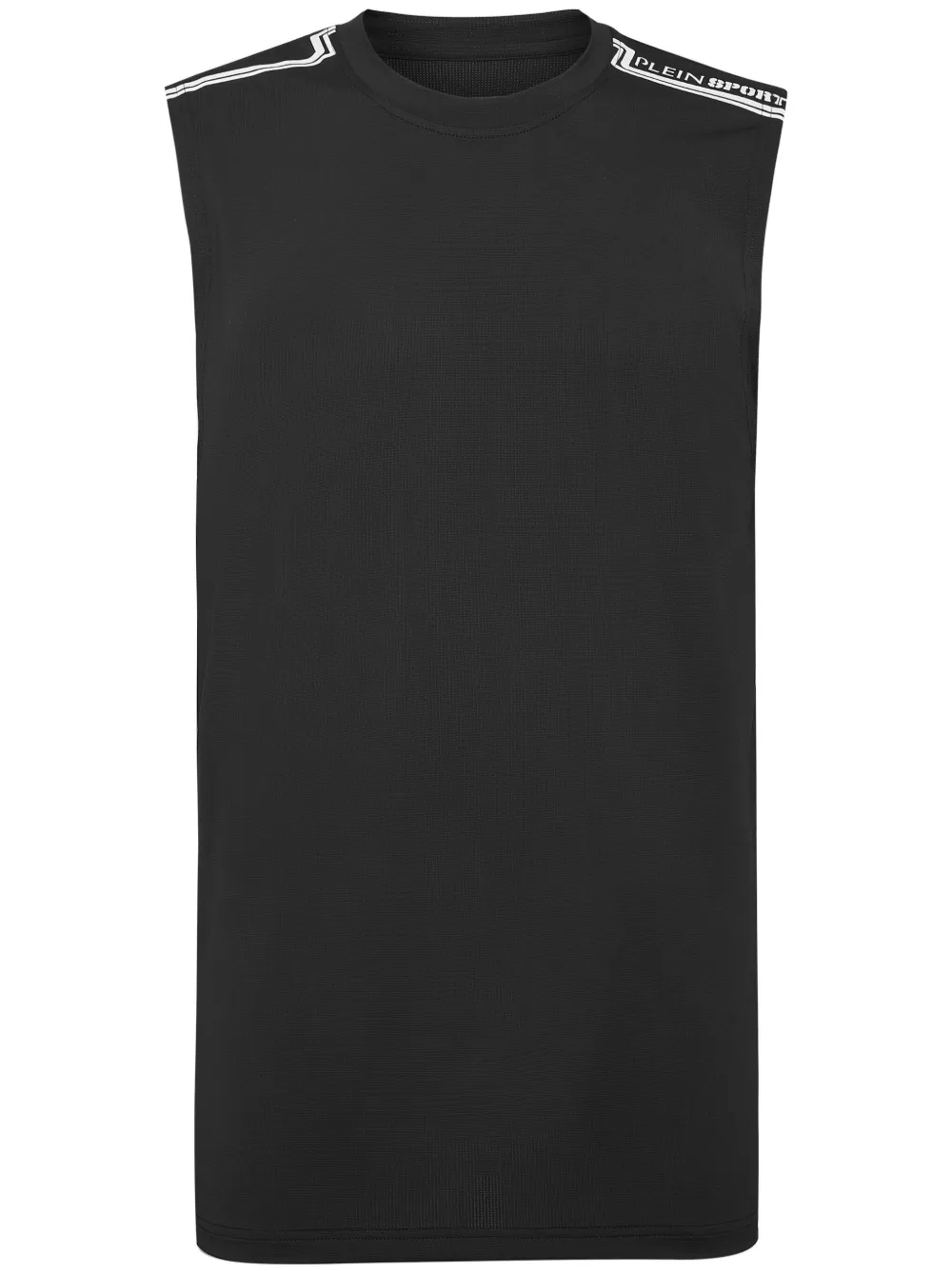 noir/blanc jersey stretch col rond logo imprimé sur l’épaule imprimé à rayures design sans manches ourlet droit