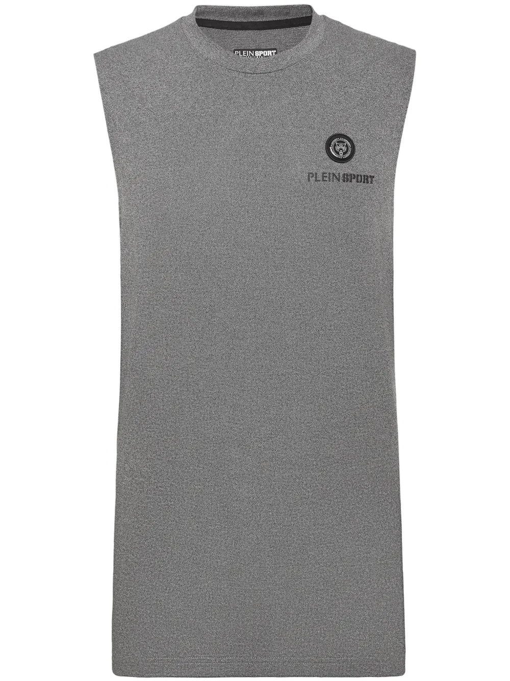 gris/noir jersey stretch col rond design sans manches plaque logo appliqué logo imprimé à rayures ourlet droit