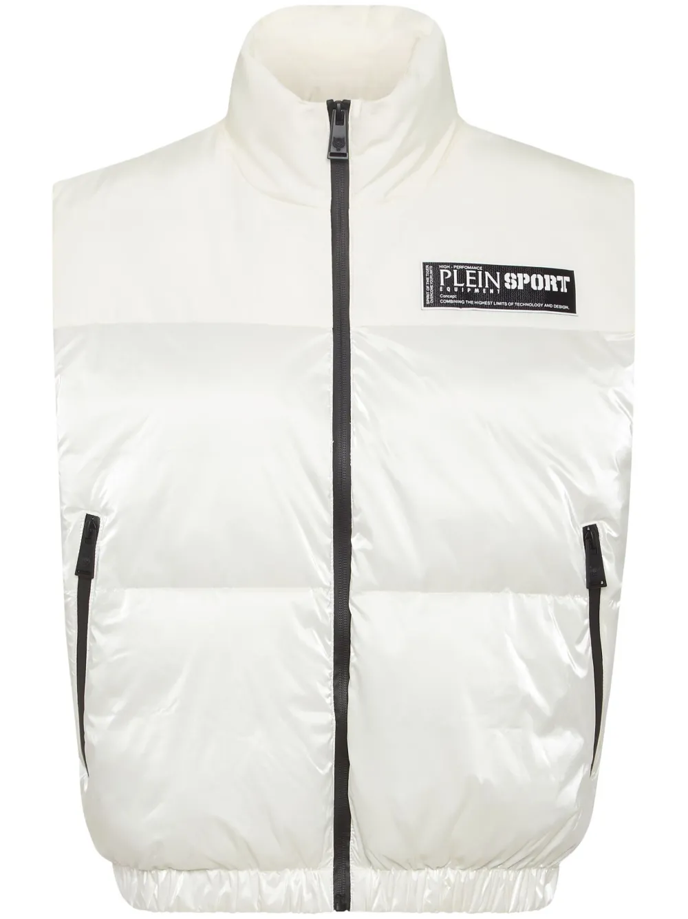 blanc design matelassé design matelassé fermeture zippée devant col montant design sans manches appliqué logo poches à fermeture zippée devant ourlet élastiqué