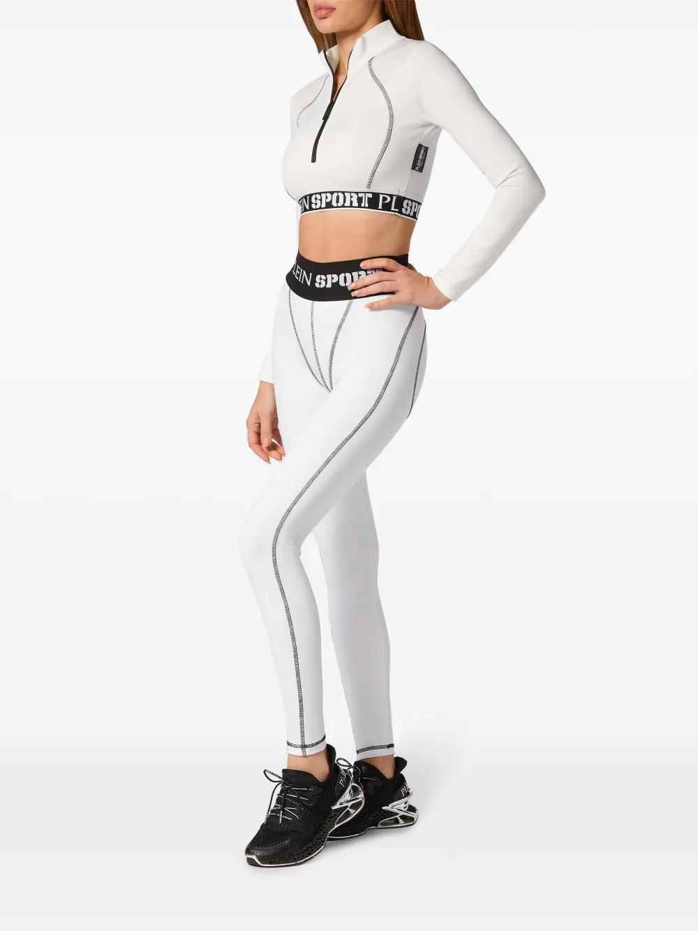 wit/zwart stretch design contrasterende stiksels high waist elastische tailleband