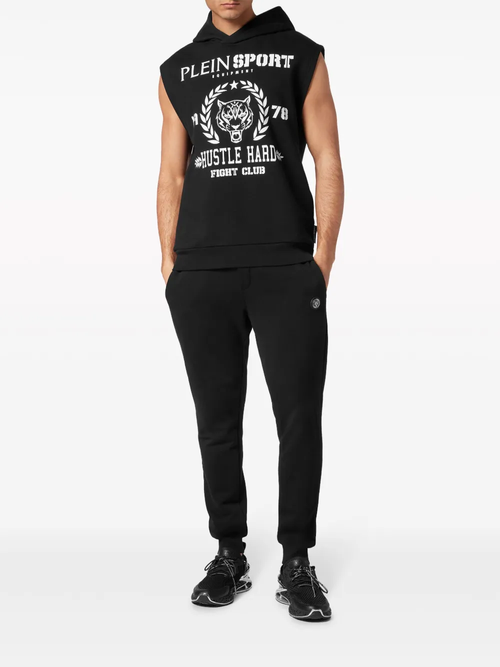 zwart/wit katoenblend tijgerprint logoprint op de voorkant tekst aan de voorkant klassieke capuchon mouwloos rechte zoom