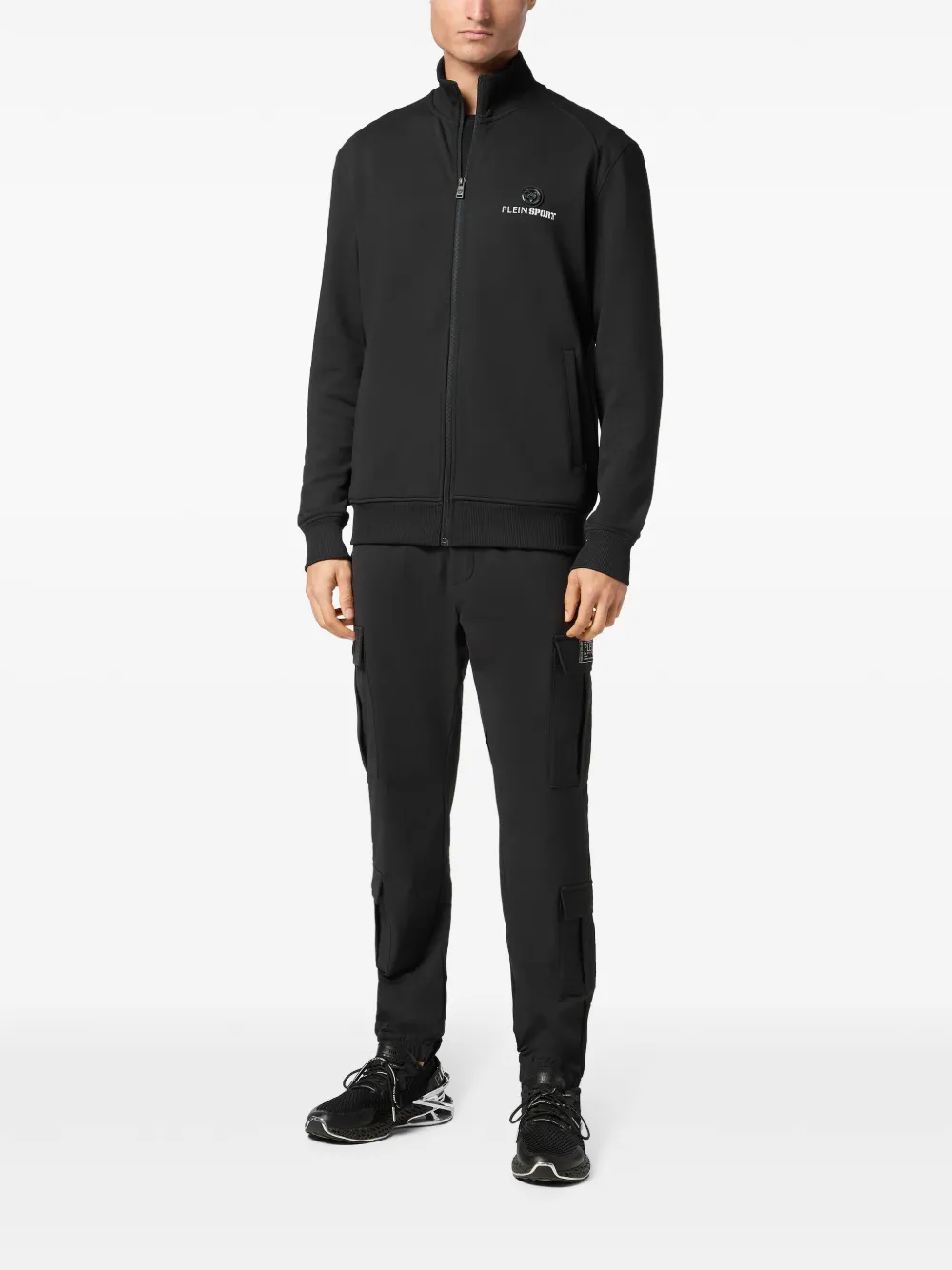 zwart ritssluiting aan de voorkant steekvakken aan de zijkant opstaande kraag logoprint op de borst