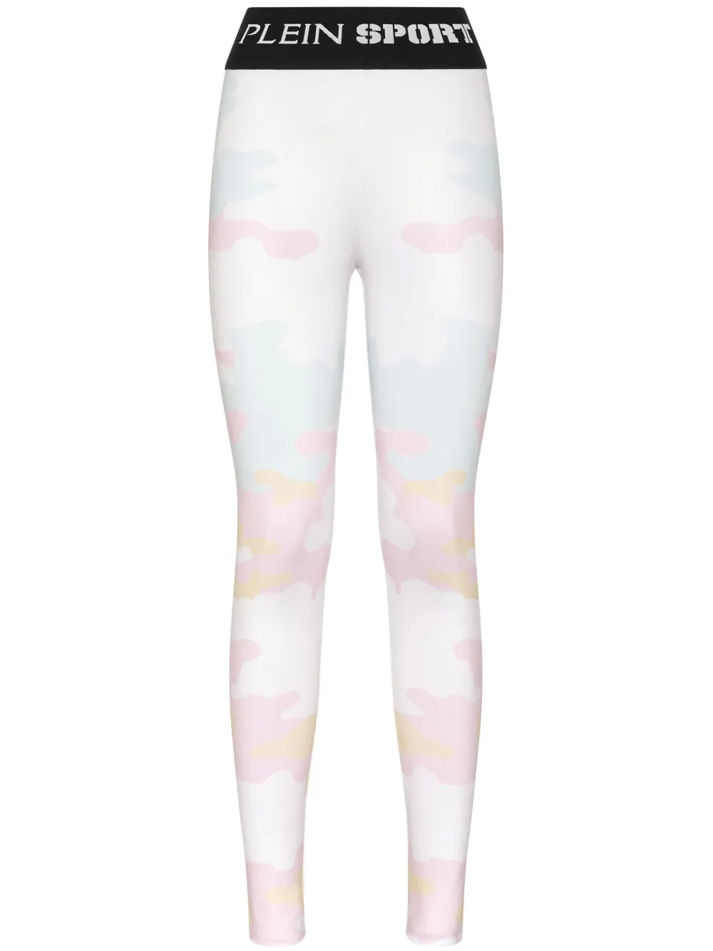 blanc/multicolore design stretch imprimé camouflage taille haute ceinture élastique à logo longueur cheville