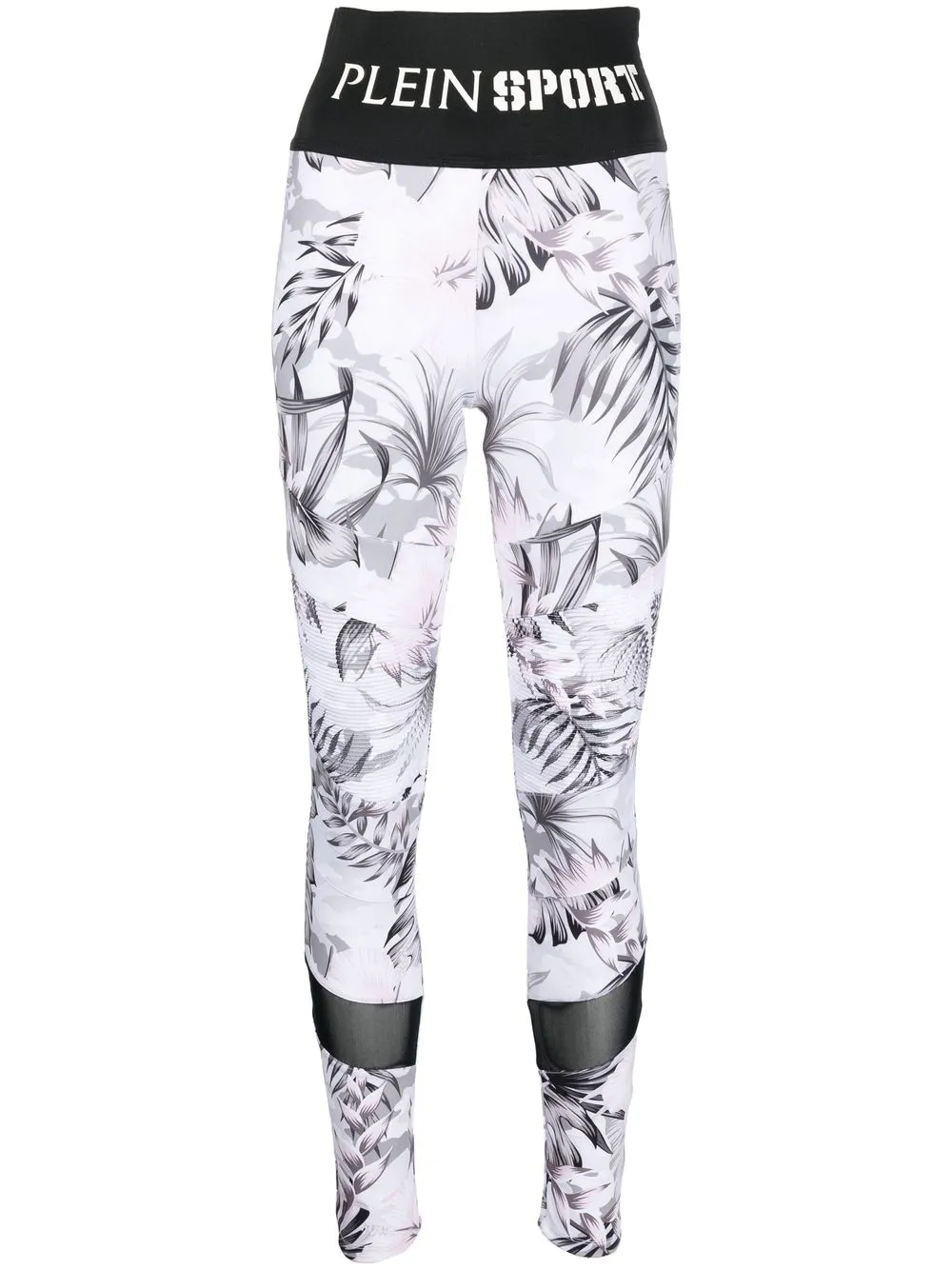 Motif de fleurs, ceinture à logo, empiècement en mesh, empiècements semi-transparents, taille haute, ceinture élastique, coupe skinny.
