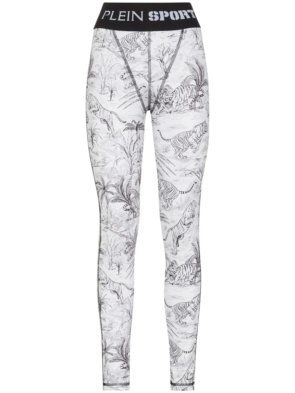 blanc/noir design stretch imprimé graphique intégral taille haute ceinture élastique à logo