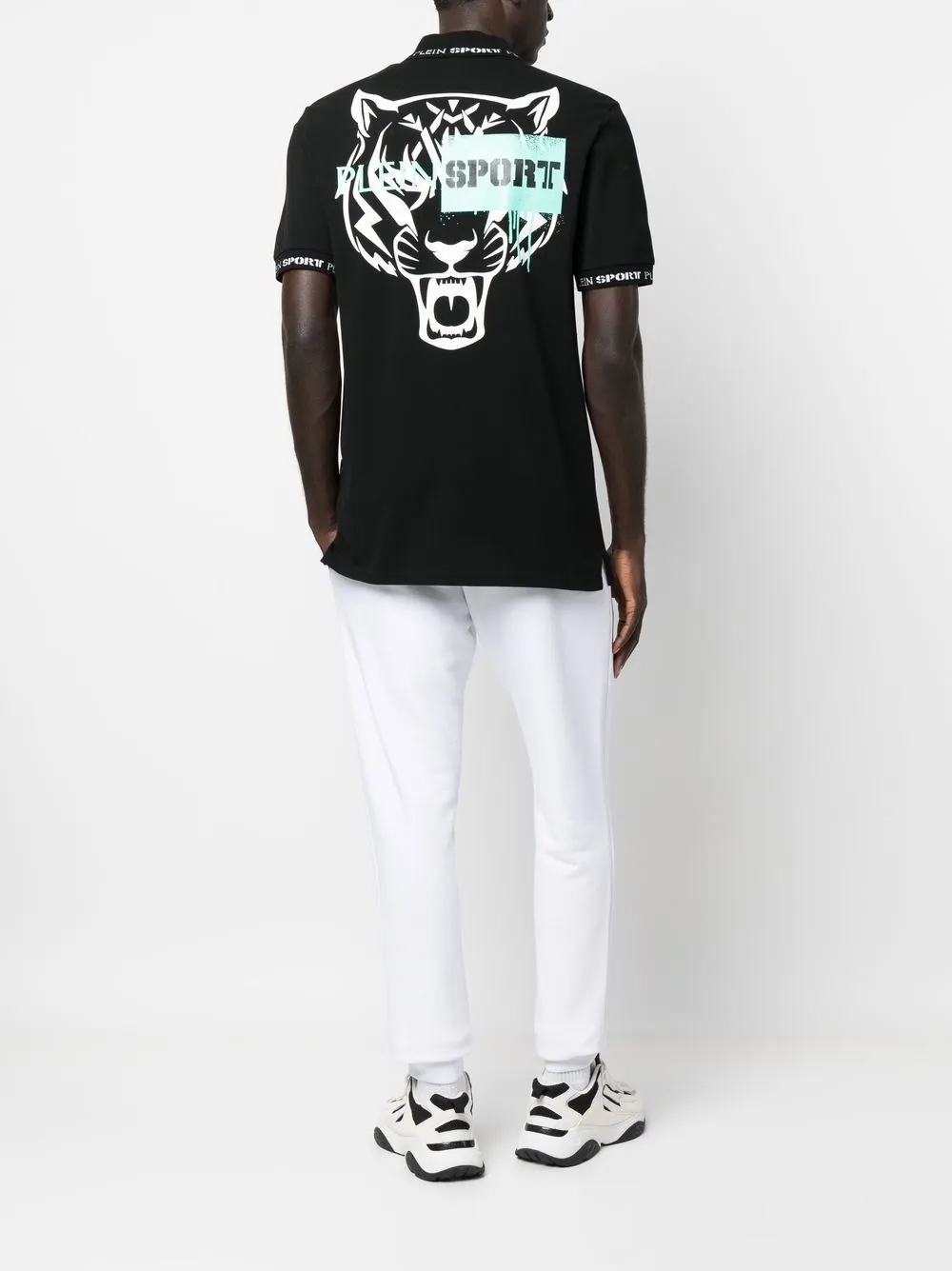 Zwart/wit, katoenmix, logopatches aan de voorkant, polokraag, knoop aan de voorkant, korte mouwen en rechte zoom.