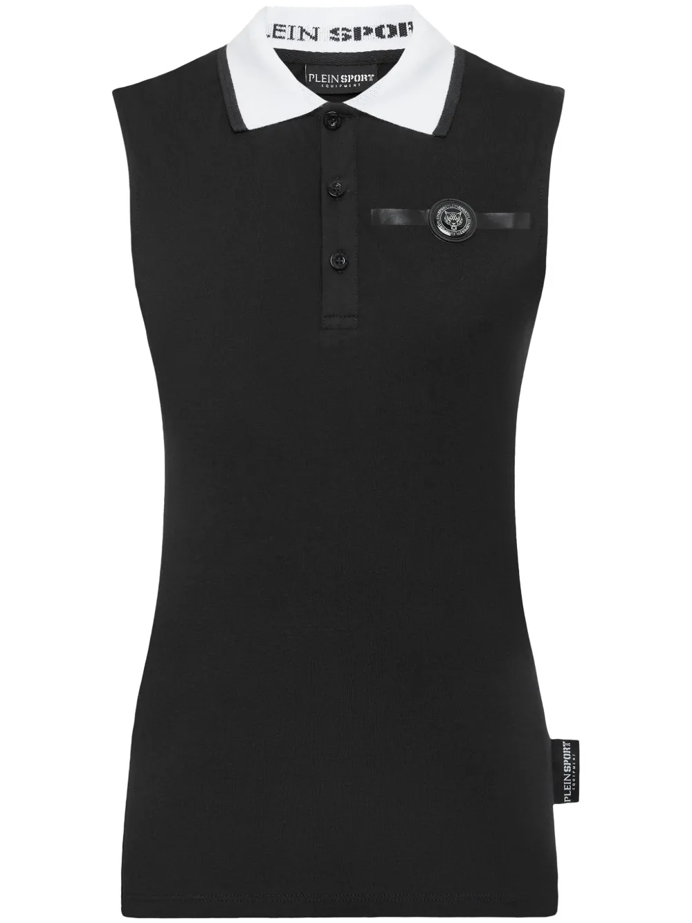 noir/blanc plaque logo étiquette logo col polo boutonnière sur le devant design sans manches