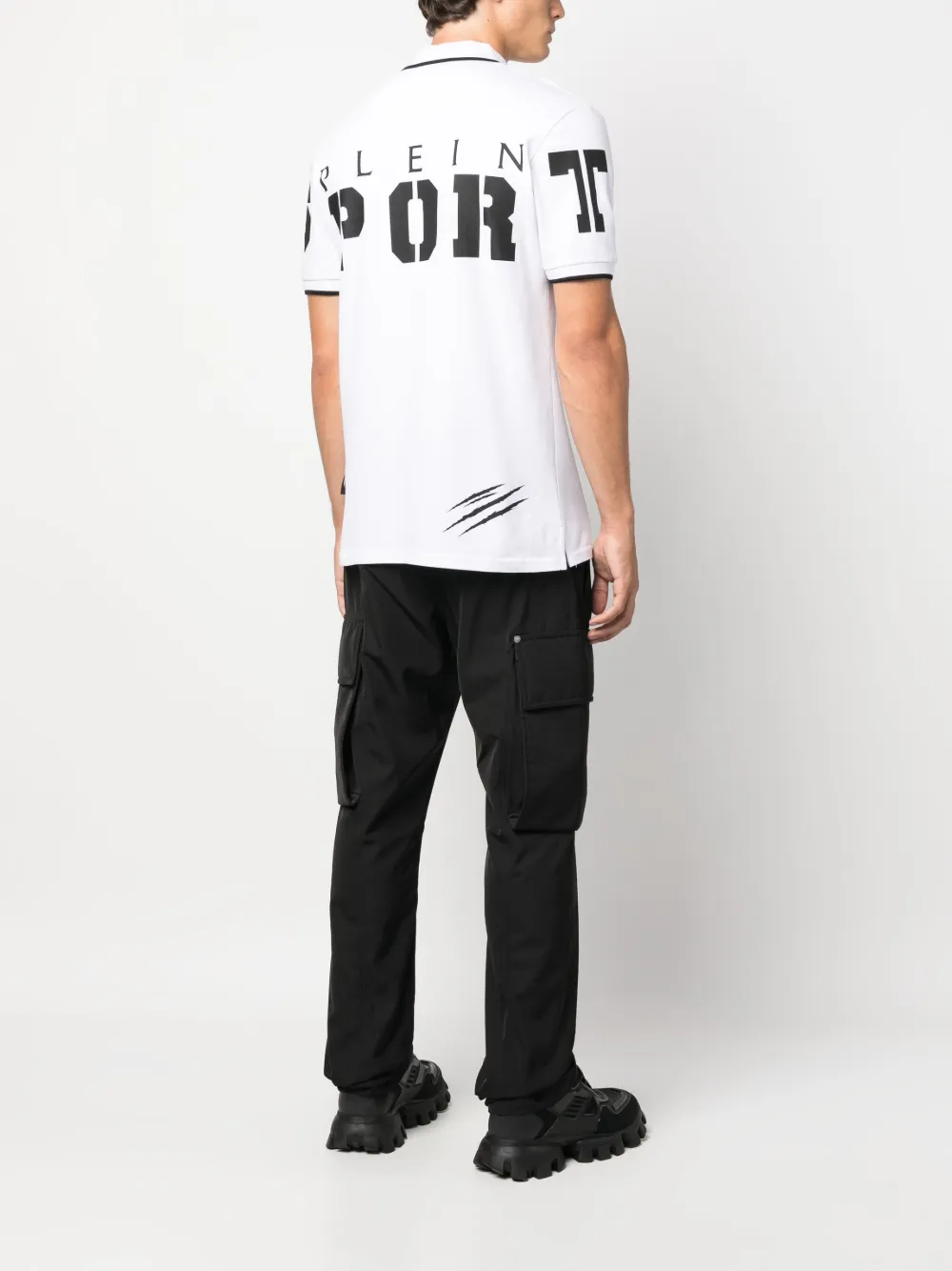 Optisch wit, katoen, logopatch aan de voorkant, logoprint op de achterkant, mini logo label, contrasterende afwerking, polokraag, knoop aan de voorkant, korte mouwen en rechte zoom.
