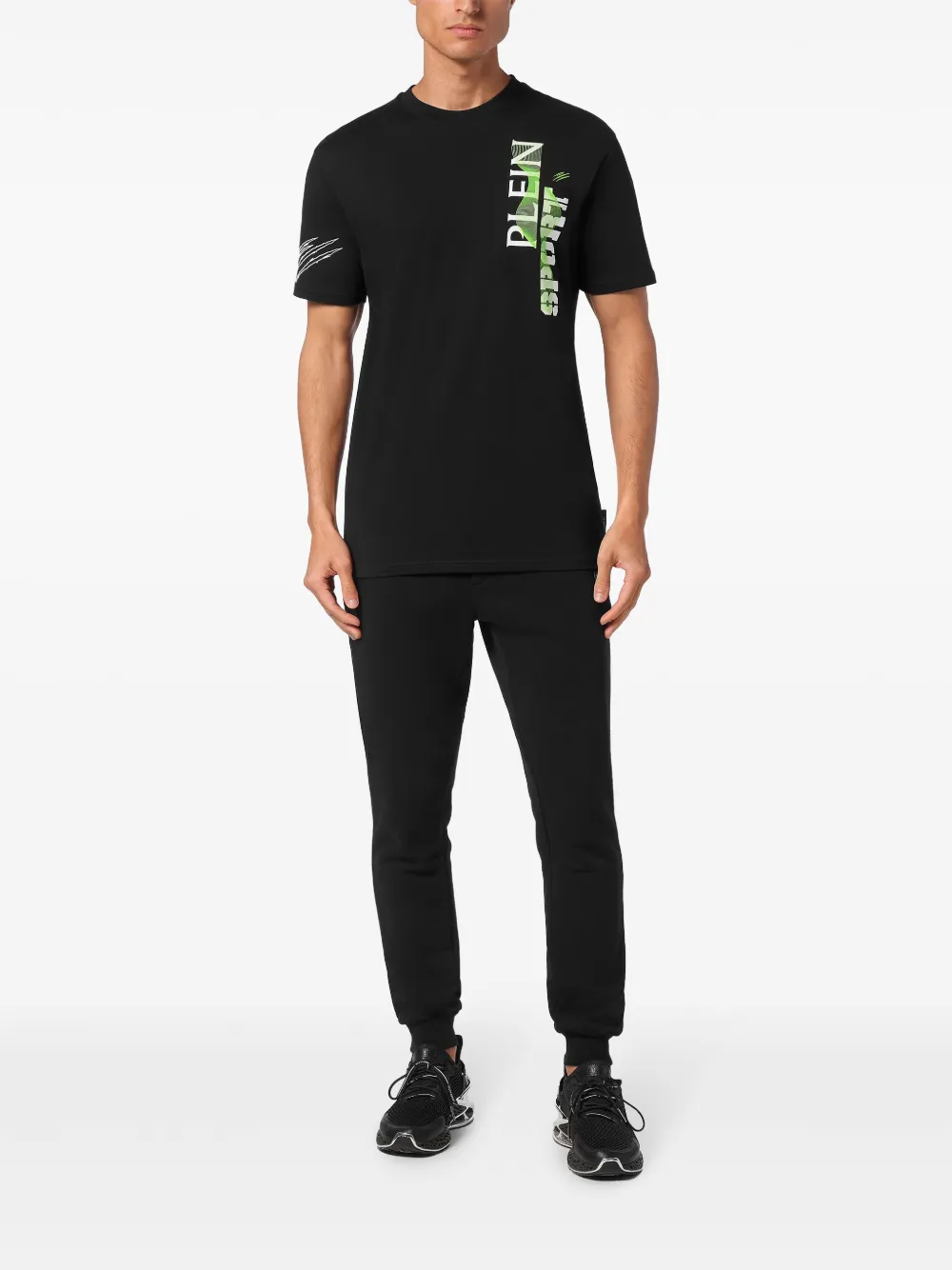 zwart katoen lichtgewicht jersey logoprint op de borst logoprint op de achterkant ronde hals korte mouwen rechte zoom
