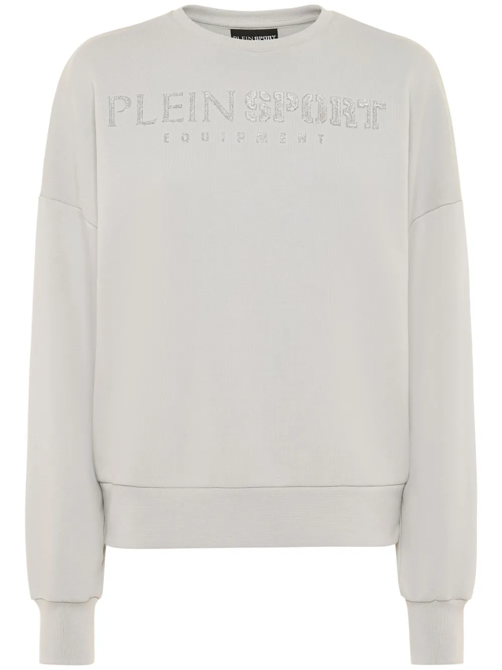 gris clair coton mélangé col rond logo brodé sur le devant épaules tombantes manches longues manches à poignets resserrés ourlet droit