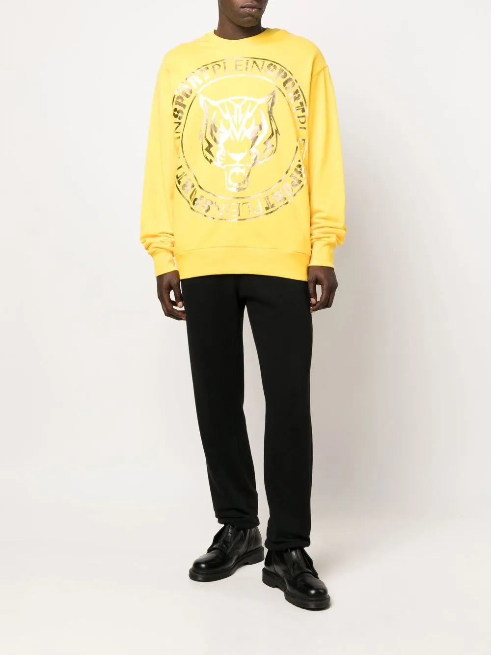 Kanariegeel, katoenmix, kenmerkend tijgerkop patroon, logolabel, ronde hals, lange mouwen en rechte zoom.