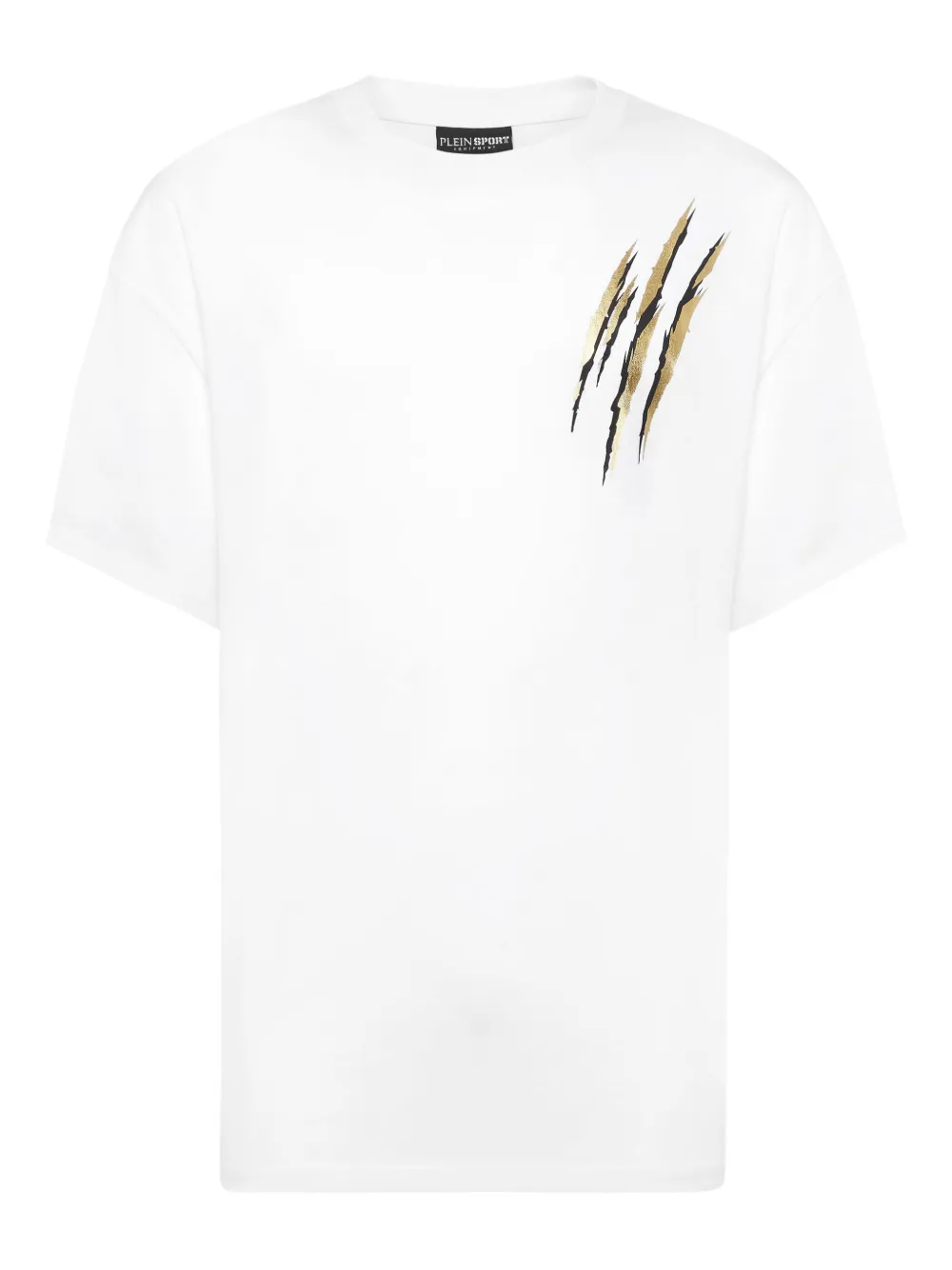 blanc coton col rond manches courtes imprimé graphique à l’avant ourlet droit