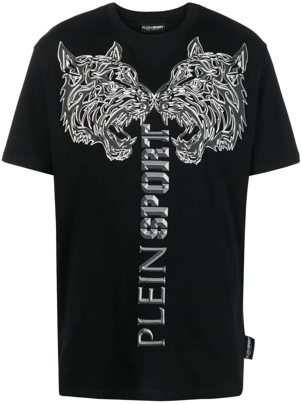 Noir, logo imprimé à l’arrière, motif tête de tigre signature, encolure ras du cou, manches courtes, ourlet droit.