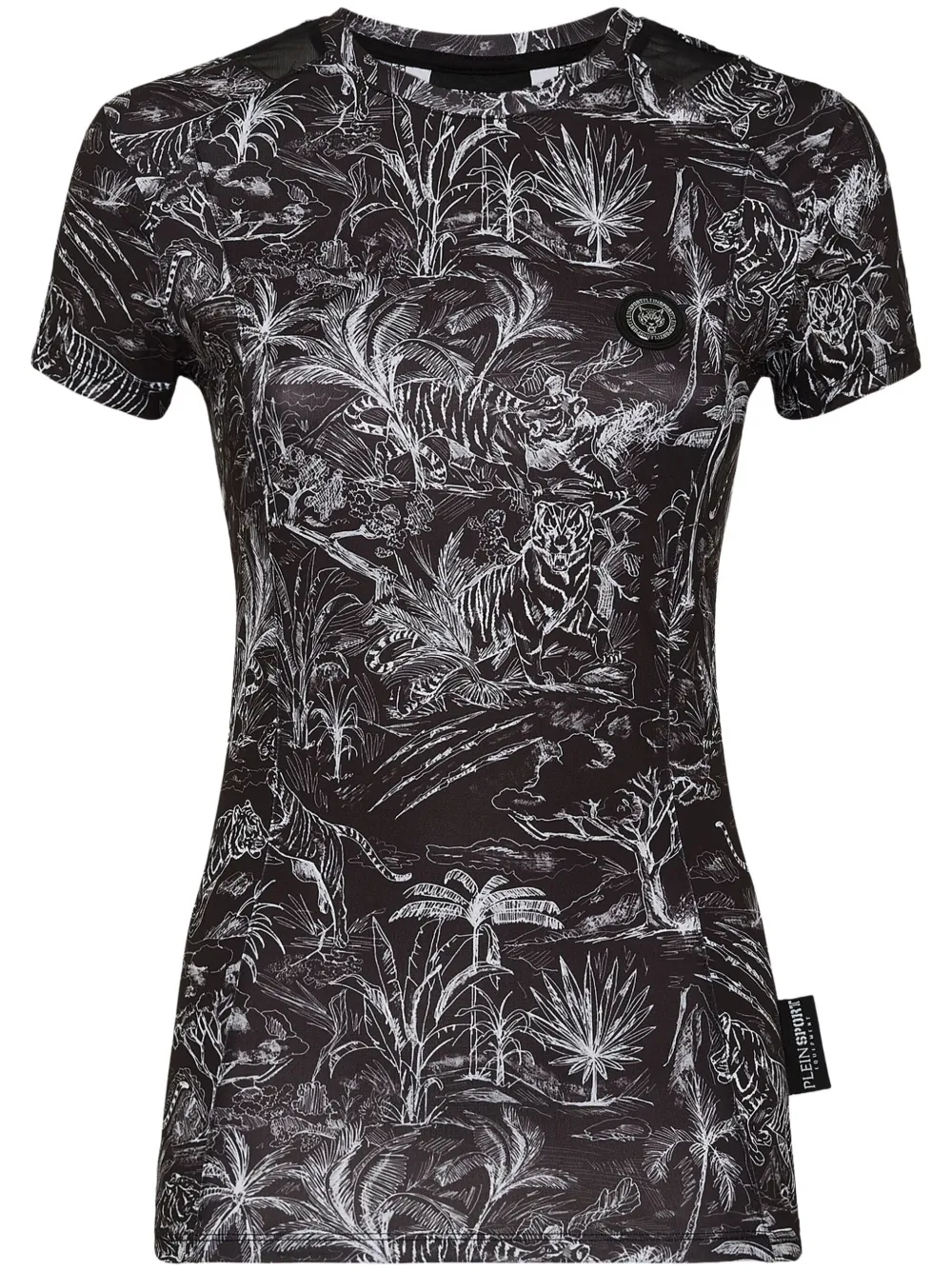 noir/blanc jersey stretch empiècement en résille imprimé graphique all-over logo imprimé à l’arrière col rond manches courtes ourlet droit