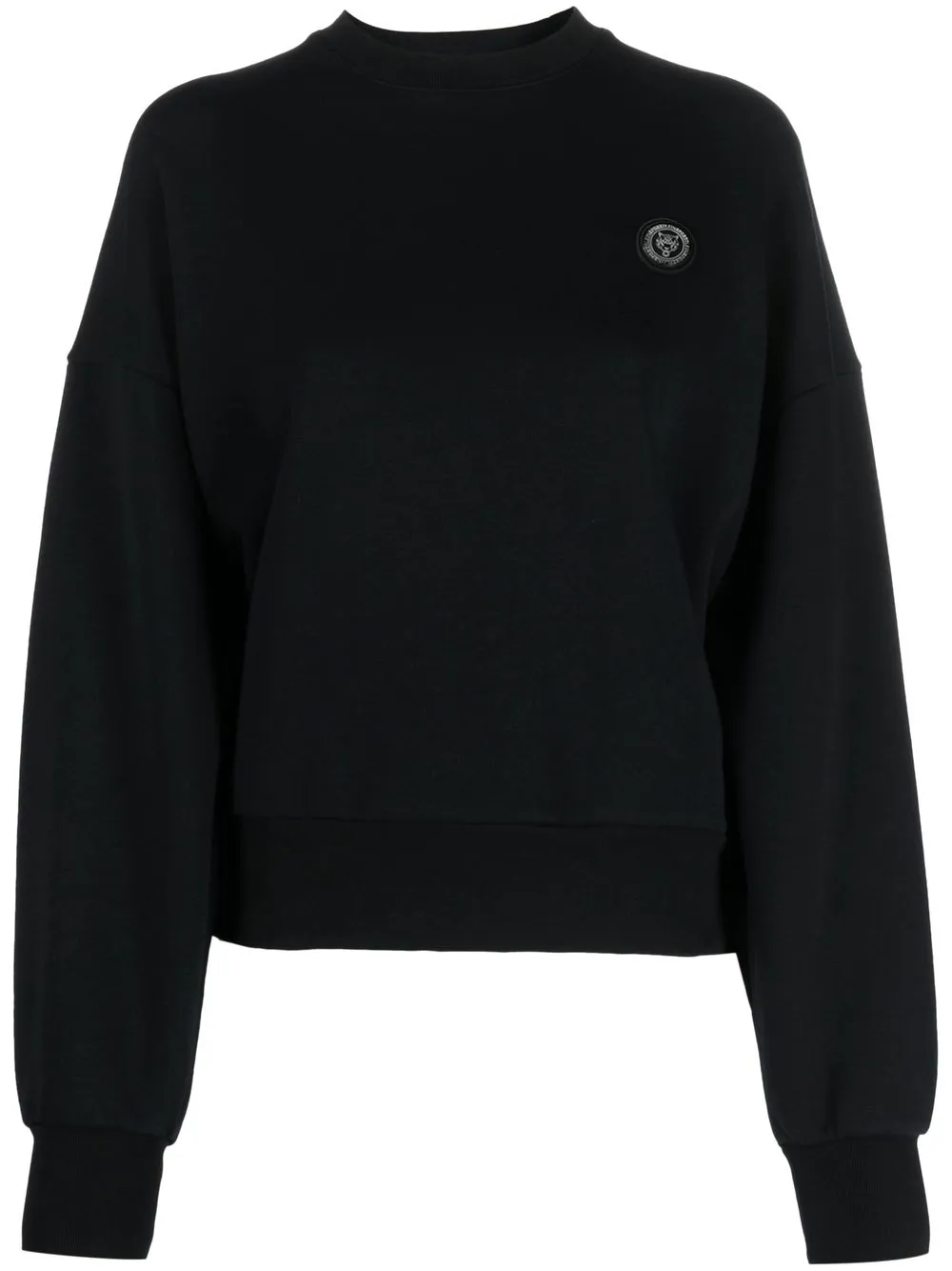 Noir, coton, appliqué logo, encolure ras du cou, manches longues, poignets élastiqués, ourlet élastiqué.