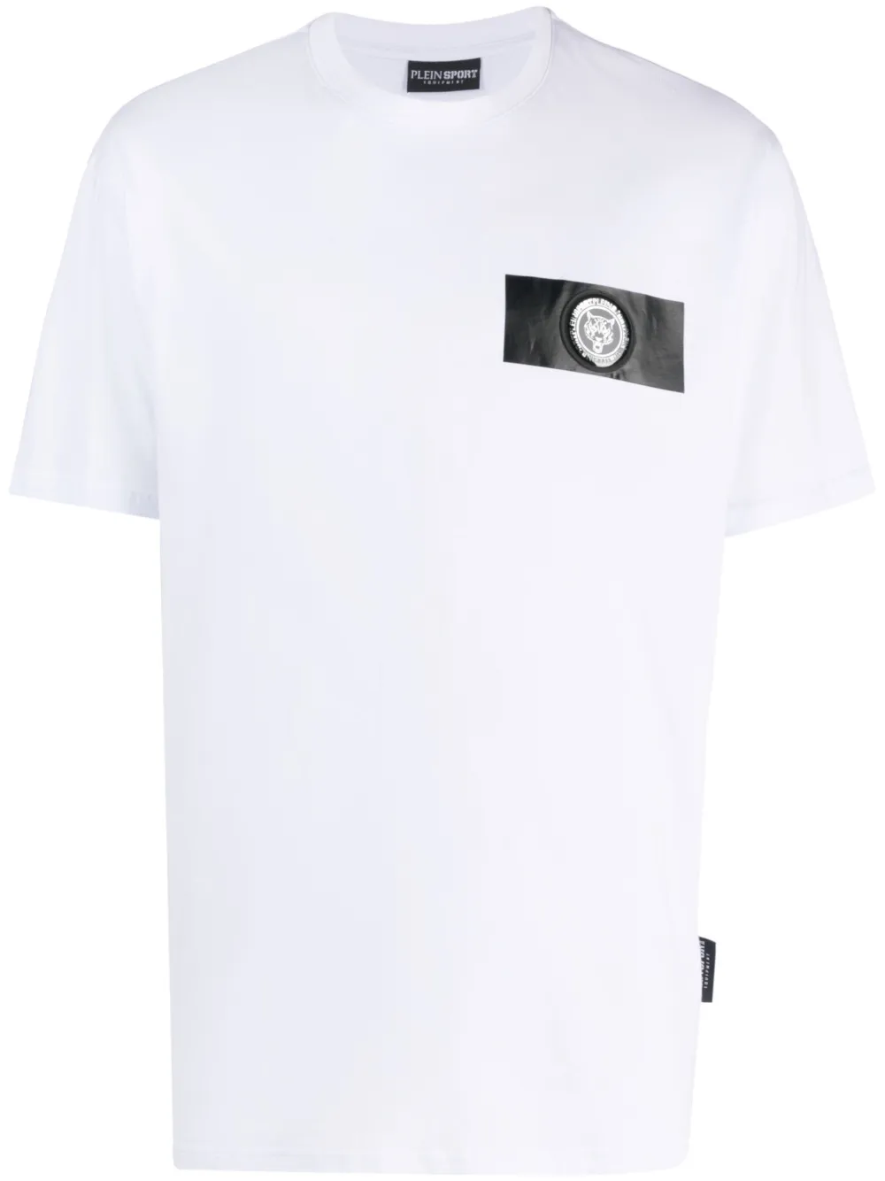 Blanc, coton, patch poitrine à logo, logo imprimé à l’arrière, encolure ras du cou, manches courtes, ourlet droit.