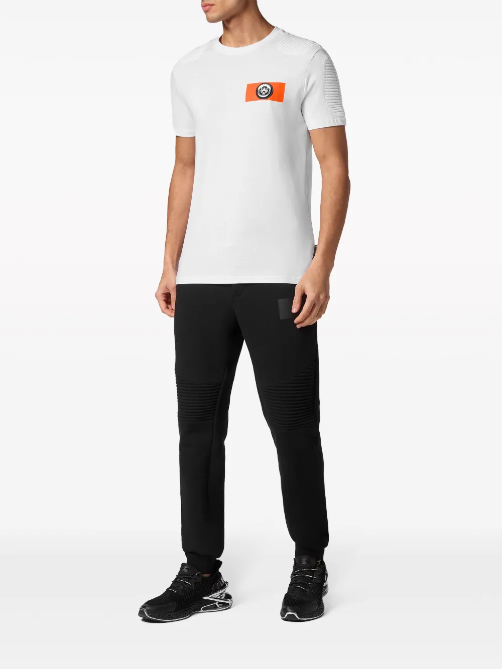 wit katoen logopatch aan de voorkant logoprint op de achterkant geribbelde vlakken ronde hals korte mouwen rechte zoom
